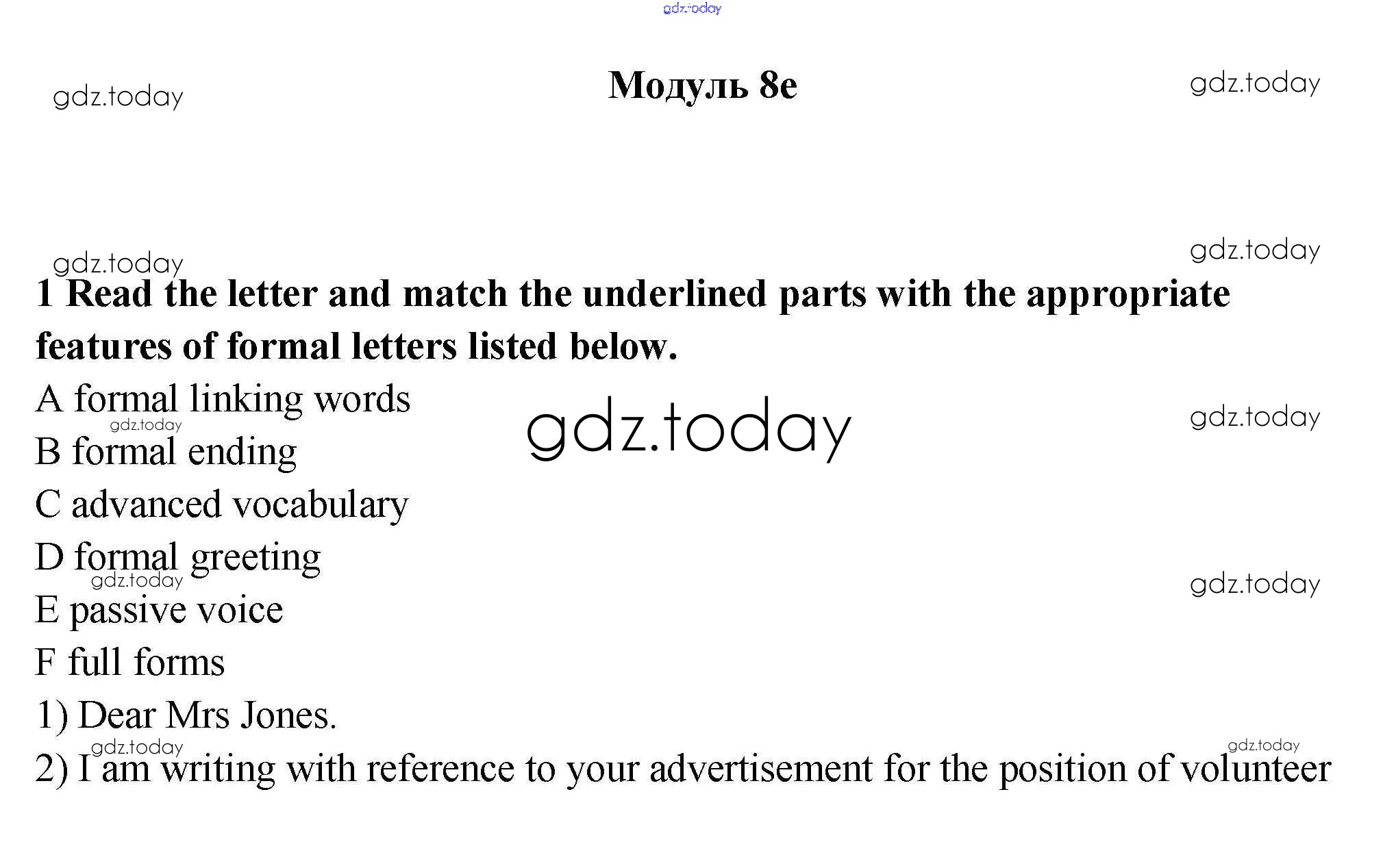 На страницах сайта gdz.today вы найдете учебный и вспомогательный материал, направленный на улучшения знаний школьной программы. ГДЗ - онлайн мир знаний Часть 8e Решение к модулю 8 1 Рабочей тетради по Английскому языку для 9 класса Ваулина, Эванс Просвещение 2010