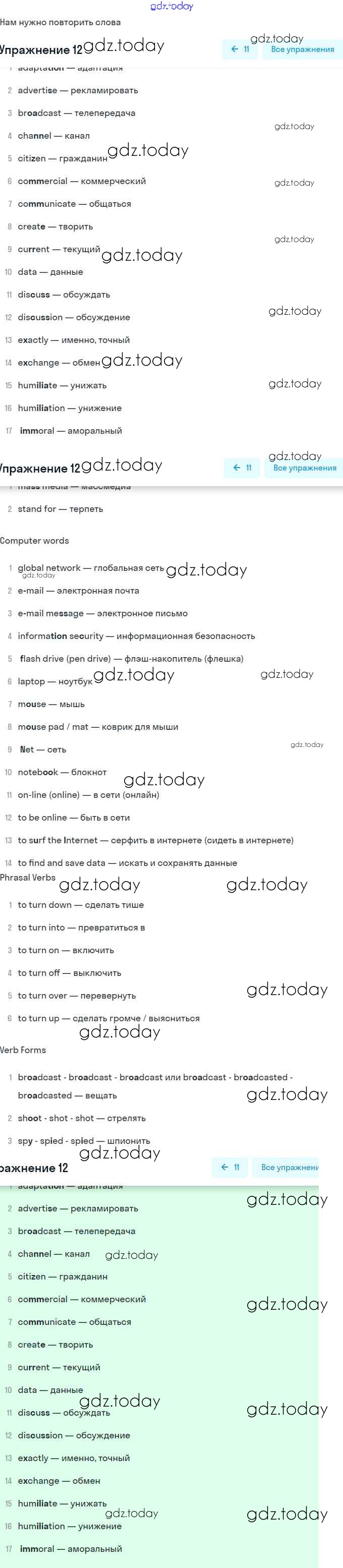 На страницах сайта gdz.today вы найдете учебный и вспомогательный материал, направленный на улучшения знаний школьной программы. ГДЗ - онлайн мир знаний Step 9 Решение. Unit 1. Mass Media: Radio, Television, the Internet 12 Учебнику по Английскому языку для 9 класса Афанасьева, Михеева Дрофа Rainbow 2017