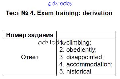 Ответы к Derivation. Тесты Решение к Exam-training 4 Контрольно-измерительным материалам (КИМ) по Английскому языку для 9 класса Сахаров ВАКО 2014