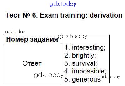 Ответы к Derivation. Тесты Решение к Exam-training 6 Контрольно-измерительным материалам (КИМ) по Английскому языку для 9 класса Сахаров ВАКО 2014