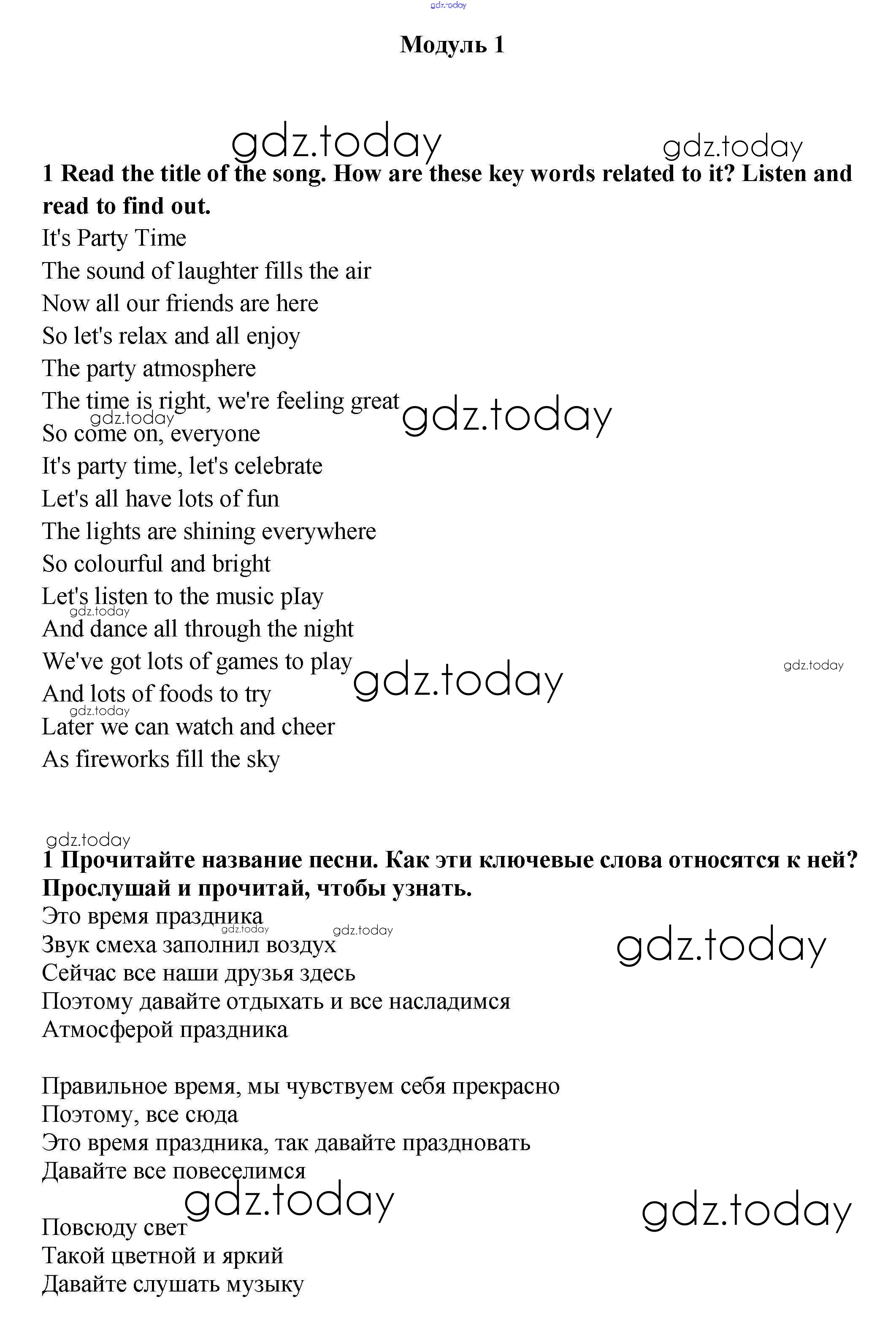 На страницах сайта gdz.today вы найдете учебный и вспомогательный материал, направленный на улучшения знаний школьной программы. ГДЗ - онлайн мир знаний Модуль 1 Решение к Songs Sheets 1 Учебнику по Английскому языку для 9 класса Ваулина, Эванс Просвещение Spotlight 2010