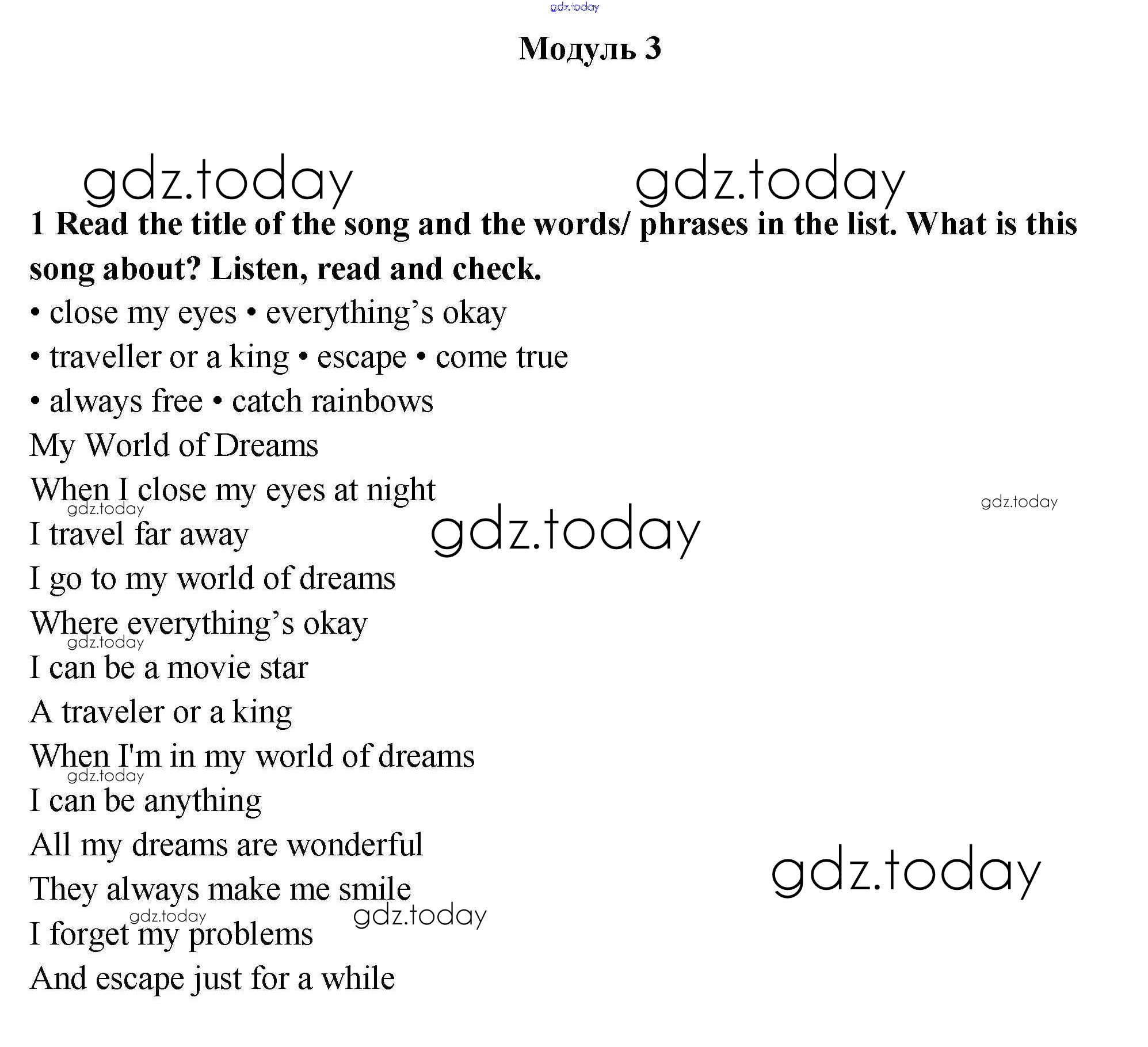 На страницах сайта gdz.today вы найдете учебный и вспомогательный материал, направленный на улучшения знаний школьной программы. ГДЗ - онлайн мир знаний Модуль 3 Решение к Songs Sheets 1 Учебнику по Английскому языку для 9 класса Ваулина, Эванс Просвещение Spotlight 2010