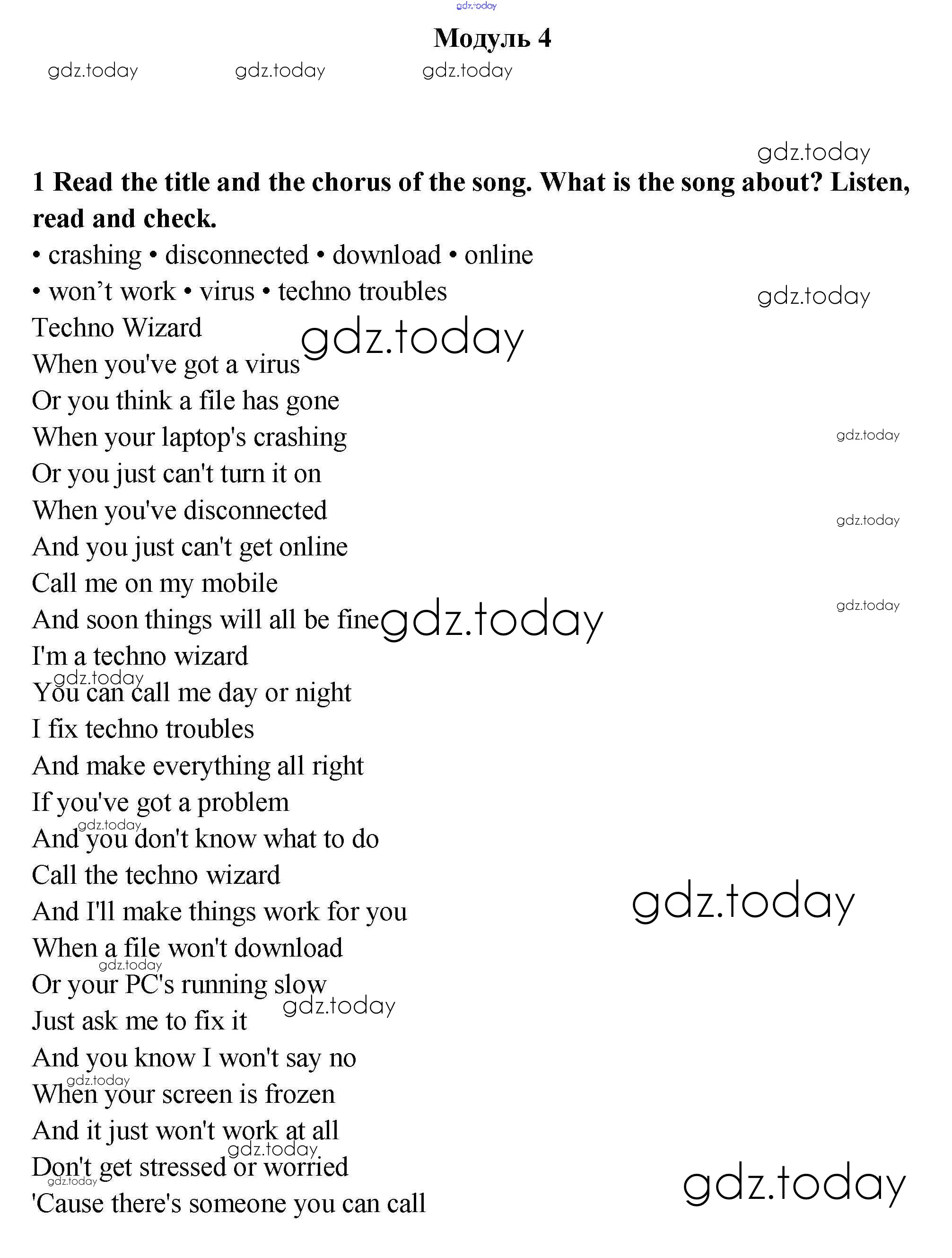На страницах сайта gdz.today вы найдете учебный и вспомогательный материал, направленный на улучшения знаний школьной программы. ГДЗ - онлайн мир знаний Модуль 4 Решение к Songs Sheets 1 Учебнику по Английскому языку для 9 класса Ваулина, Эванс Просвещение Spotlight 2010