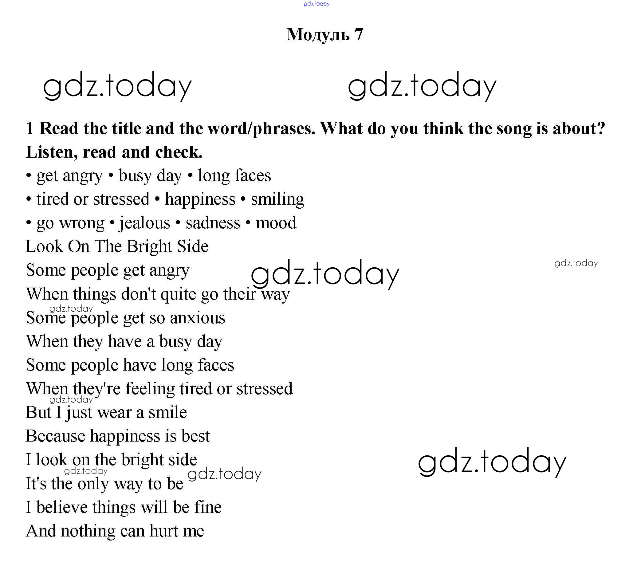 На страницах сайта gdz.today вы найдете учебный и вспомогательный материал, направленный на улучшения знаний школьной программы. ГДЗ - онлайн мир знаний Модуль 7 Решение к Songs Sheets 1 Учебнику по Английскому языку для 9 класса Ваулина, Эванс Просвещение Spotlight 2010