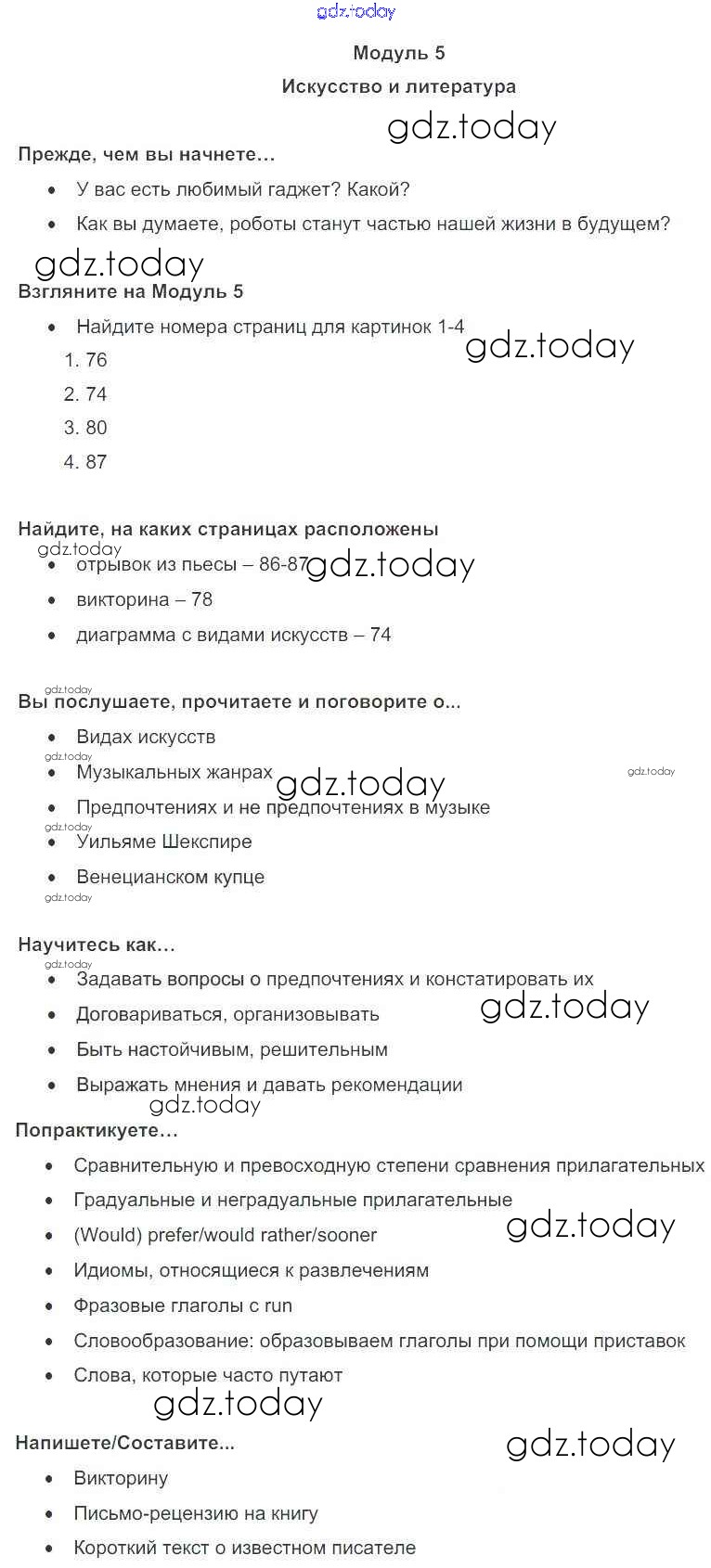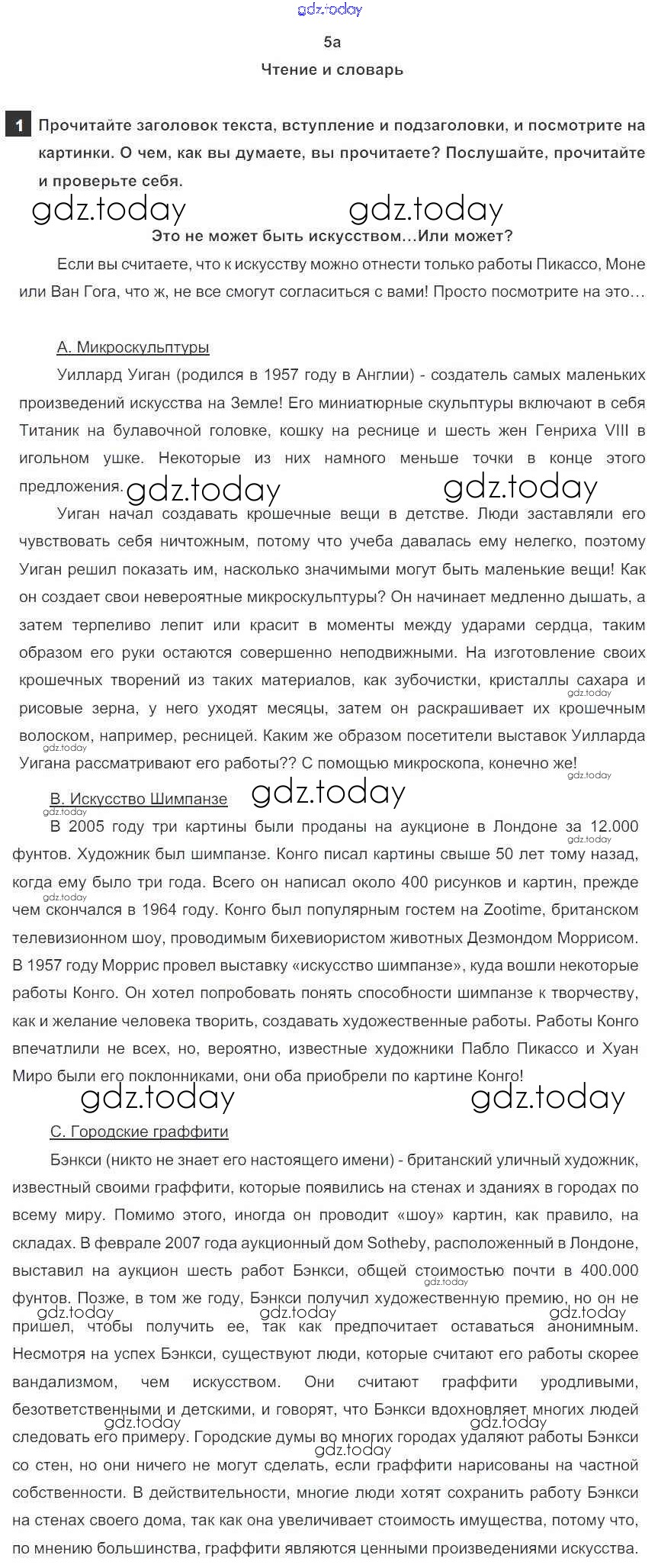 На страницах сайта gdz.today вы найдете учебный и вспомогательный материал, направленный на улучшения знаний школьной программы. ГДЗ - онлайн мир знаний Часть 5a Решение к модулю 5 1 Учебнику по Английскому языку для 9 класса Ваулина, Эванс Просвещение Spotlight 2010