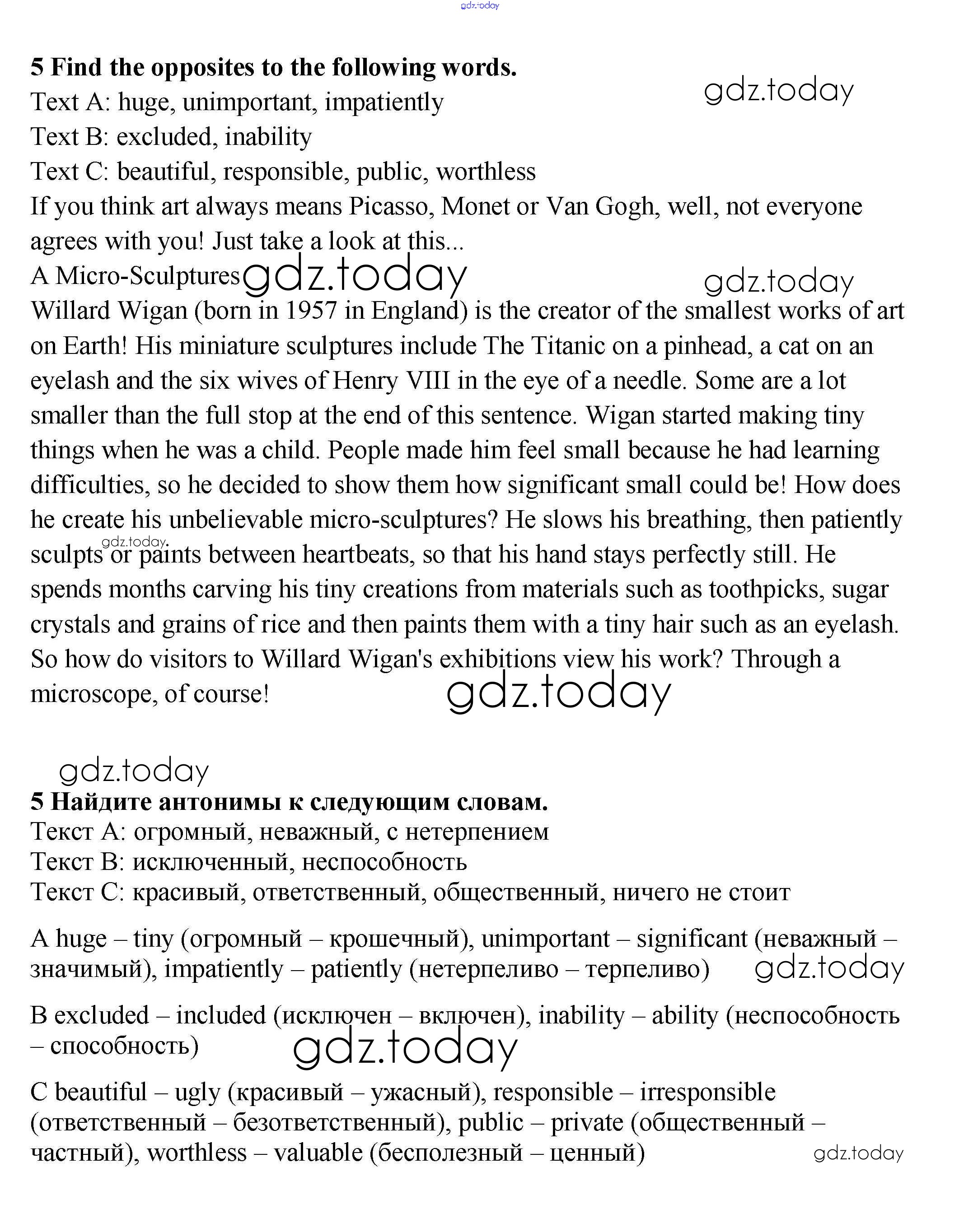 На страницах сайта gdz.today вы найдете учебный и вспомогательный материал, направленный на улучшения знаний школьной программы. ГДЗ - онлайн мир знаний Часть 5a Решение к модулю 5 5 Учебнику по Английскому языку для 9 класса Ваулина, Эванс Просвещение Spotlight 2010