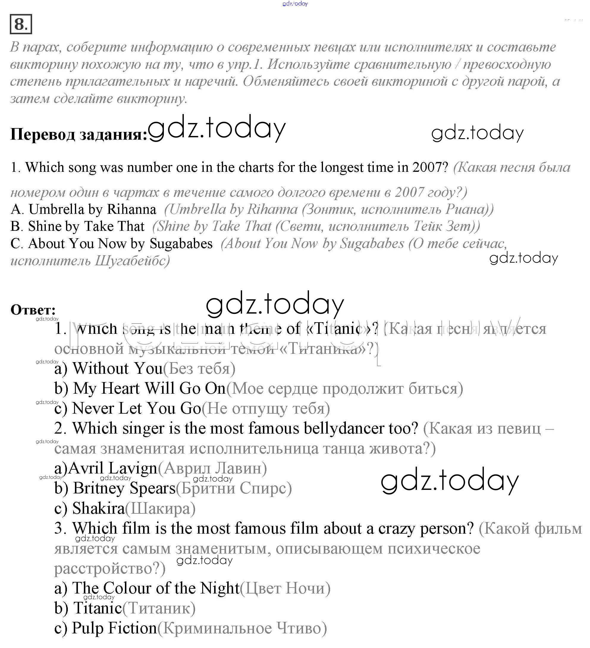 На страницах сайта gdz.today вы найдете учебный и вспомогательный материал, направленный на улучшения знаний школьной программы. ГДЗ - онлайн мир знаний Часть 5c Решение к модулю 5 8 Учебнику по Английскому языку для 9 класса Ваулина, Эванс Просвещение Spotlight 2010