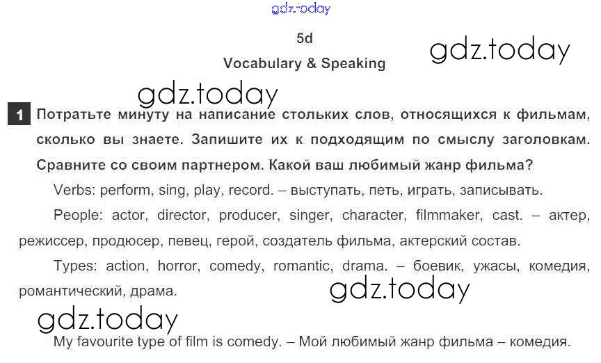На страницах сайта gdz.today вы найдете учебный и вспомогательный материал, направленный на улучшения знаний школьной программы. ГДЗ - онлайн мир знаний Часть 5d Решение к модулю 5 1 Учебнику по Английскому языку для 9 класса Ваулина, Эванс Просвещение Spotlight 2010