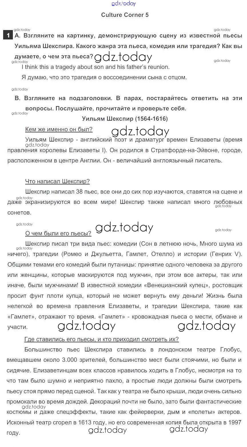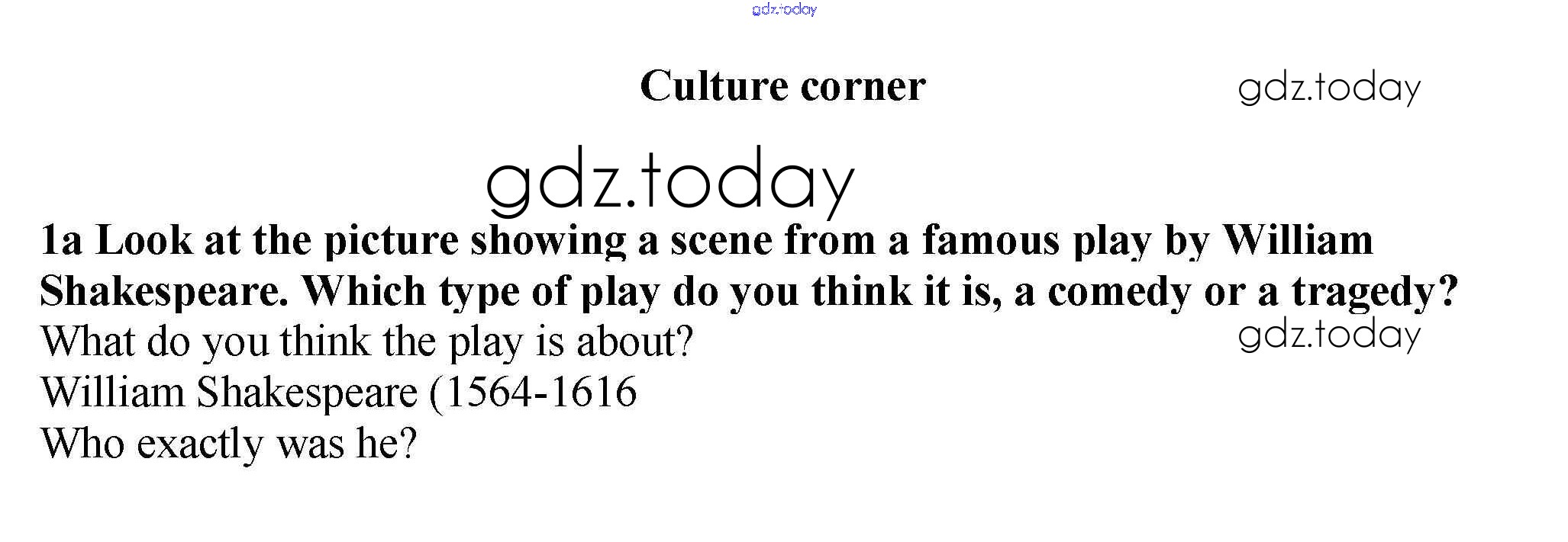 На страницах сайта gdz.today вы найдете учебный и вспомогательный материал, направленный на улучшения знаний школьной программы. ГДЗ - онлайн мир знаний Culture Corner Решение к модулю 5 1a Учебнику по Английскому языку для 9 класса Ваулина, Эванс Просвещение Spotlight 2010