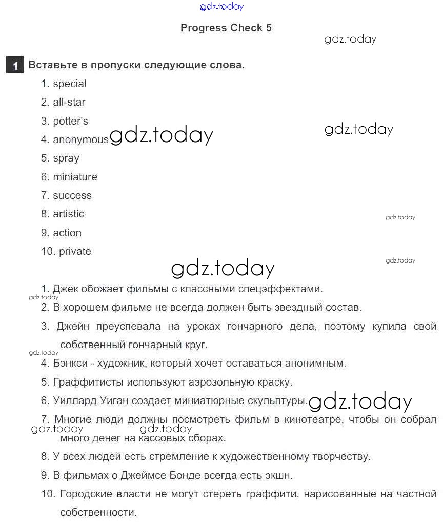 На страницах сайта gdz.today вы найдете учебный и вспомогательный материал, направленный на улучшения знаний школьной программы. ГДЗ - онлайн мир знаний Progress Check Решение к модулю 5 1 Учебнику по Английскому языку для 9 класса Ваулина, Эванс Просвещение Spotlight 2010