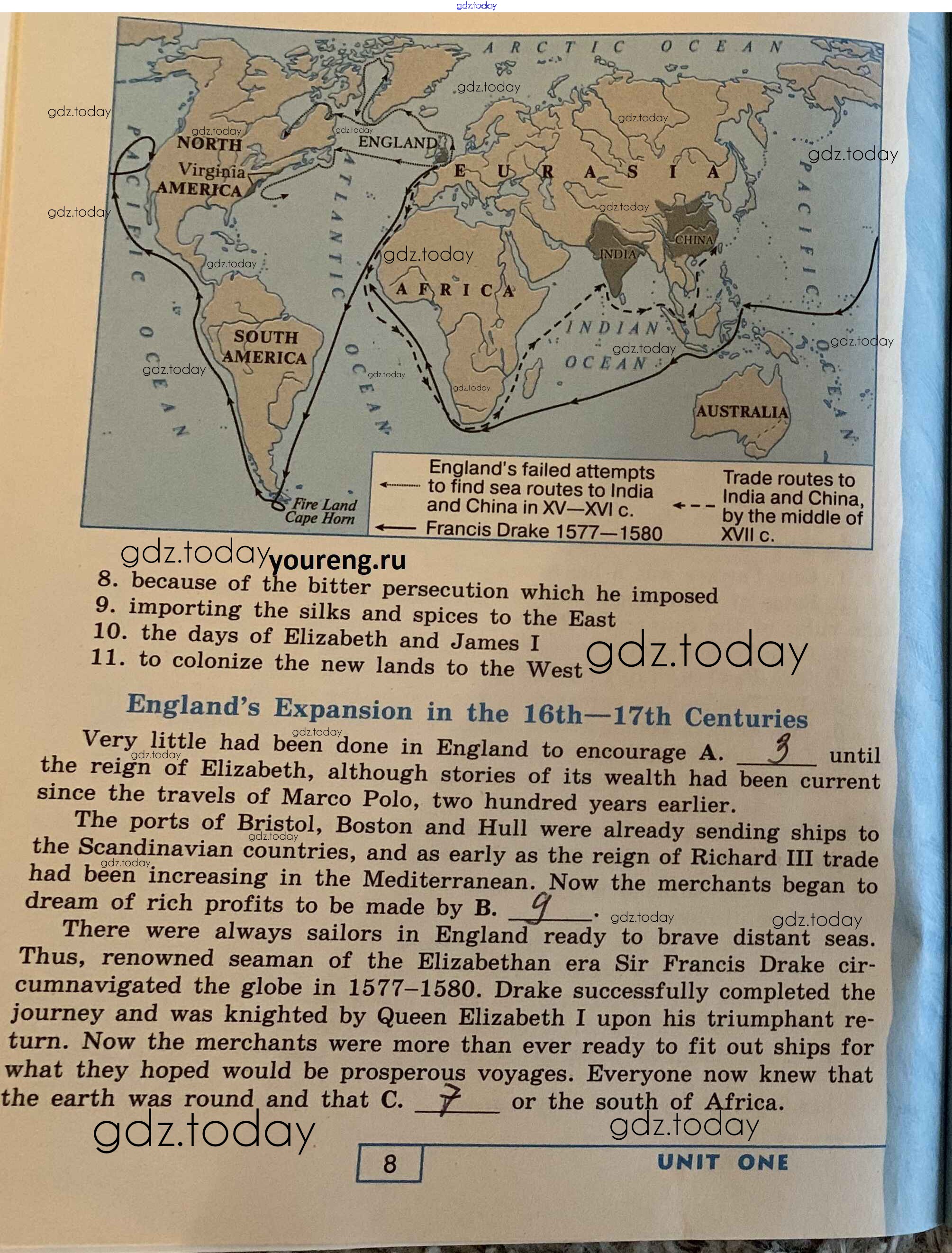 На страницах сайта gdz.today вы найдете учебный и вспомогательный материал, направленный на улучшения знаний школьной программы. ГДЗ - онлайн мир знаний Решение. Unit 1. Pages of History: Linking Past and Present стр. 8 Рабочей тетради по Английскому языку для 9 класса Афанасьева, Михеева Углубленный уровень Просвещение УМК 2016