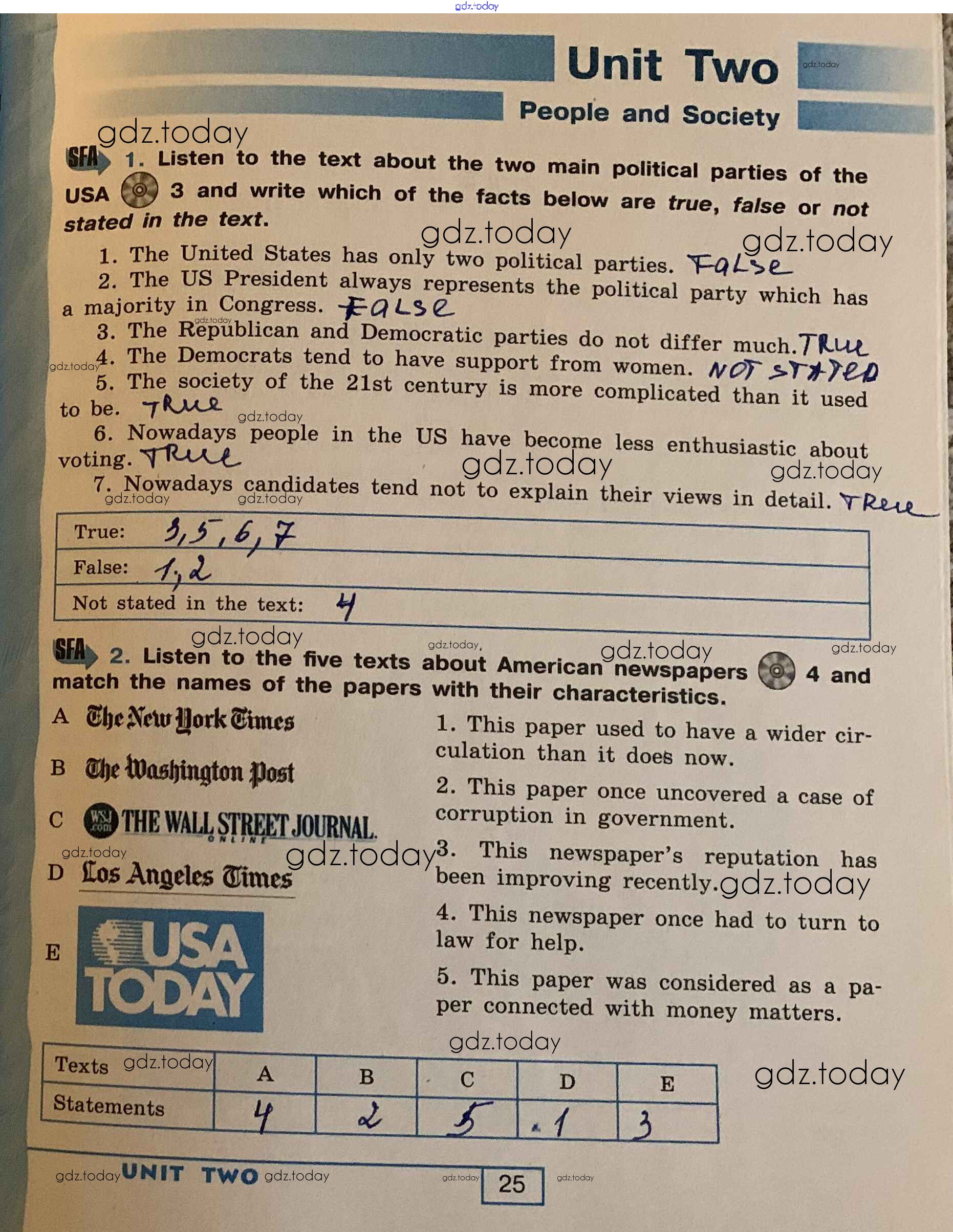 На страницах сайта gdz.today вы найдете учебный и вспомогательный материал, направленный на улучшения знаний школьной программы. ГДЗ - онлайн мир знаний Решение. Unit 2. People and Society стр. 25 Рабочей тетради по Английскому языку для 9 класса Афанасьева, Михеева Углубленный уровень Просвещение УМК 2016