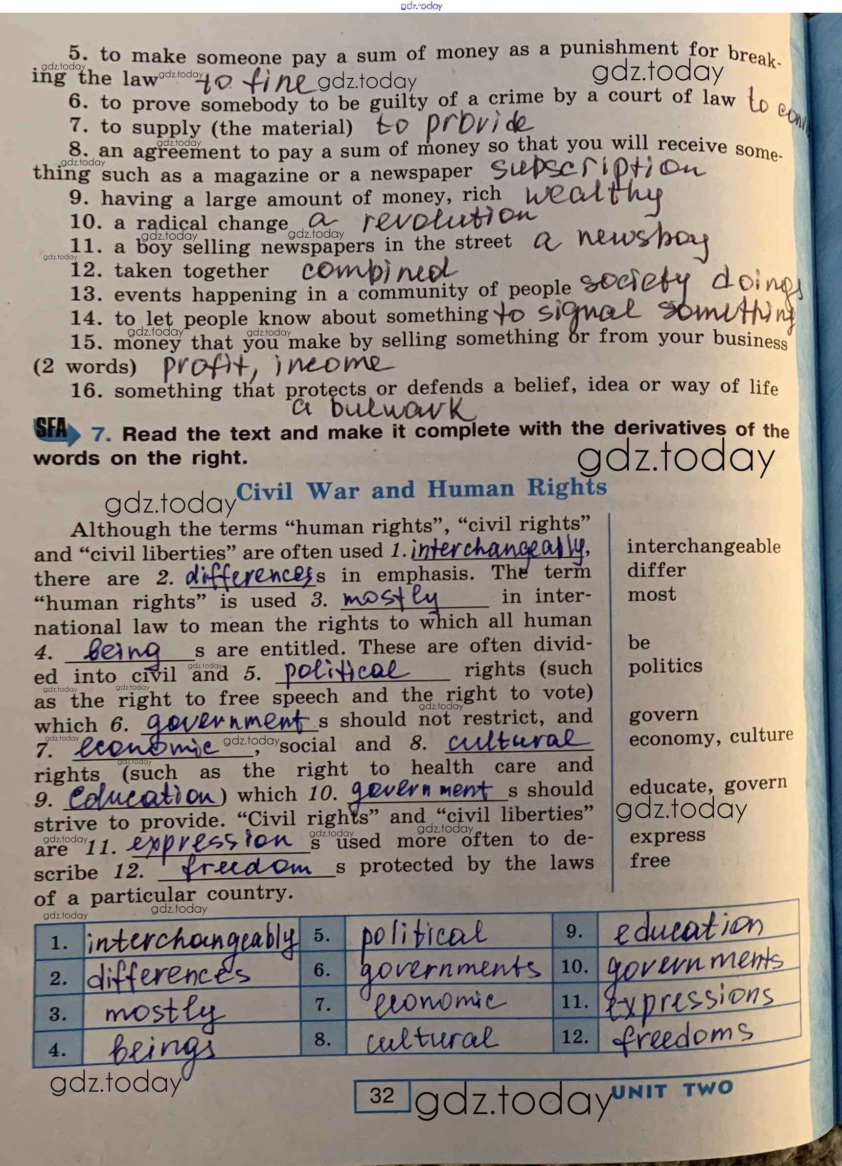 На страницах сайта gdz.today вы найдете учебный и вспомогательный материал, направленный на улучшения знаний школьной программы. ГДЗ - онлайн мир знаний Решение. Unit 2. People and Society стр. 32 Рабочей тетради по Английскому языку для 9 класса Афанасьева, Михеева Углубленный уровень Просвещение УМК 2016