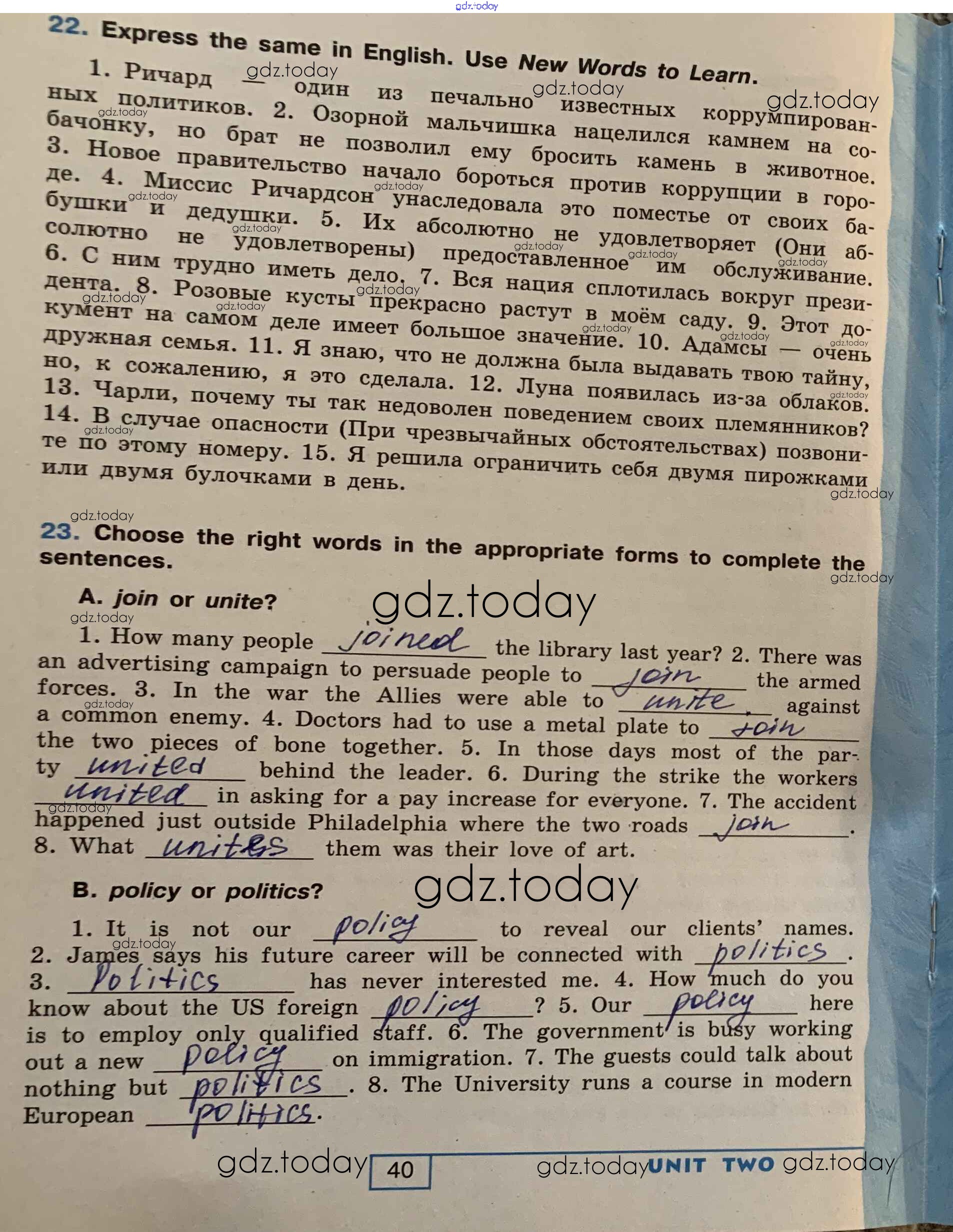 На страницах сайта gdz.today вы найдете учебный и вспомогательный материал, направленный на улучшения знаний школьной программы. ГДЗ - онлайн мир знаний Решение. Unit 2. People and Society стр. 40 Рабочей тетради по Английскому языку для 9 класса Афанасьева, Михеева Углубленный уровень Просвещение УМК 2016