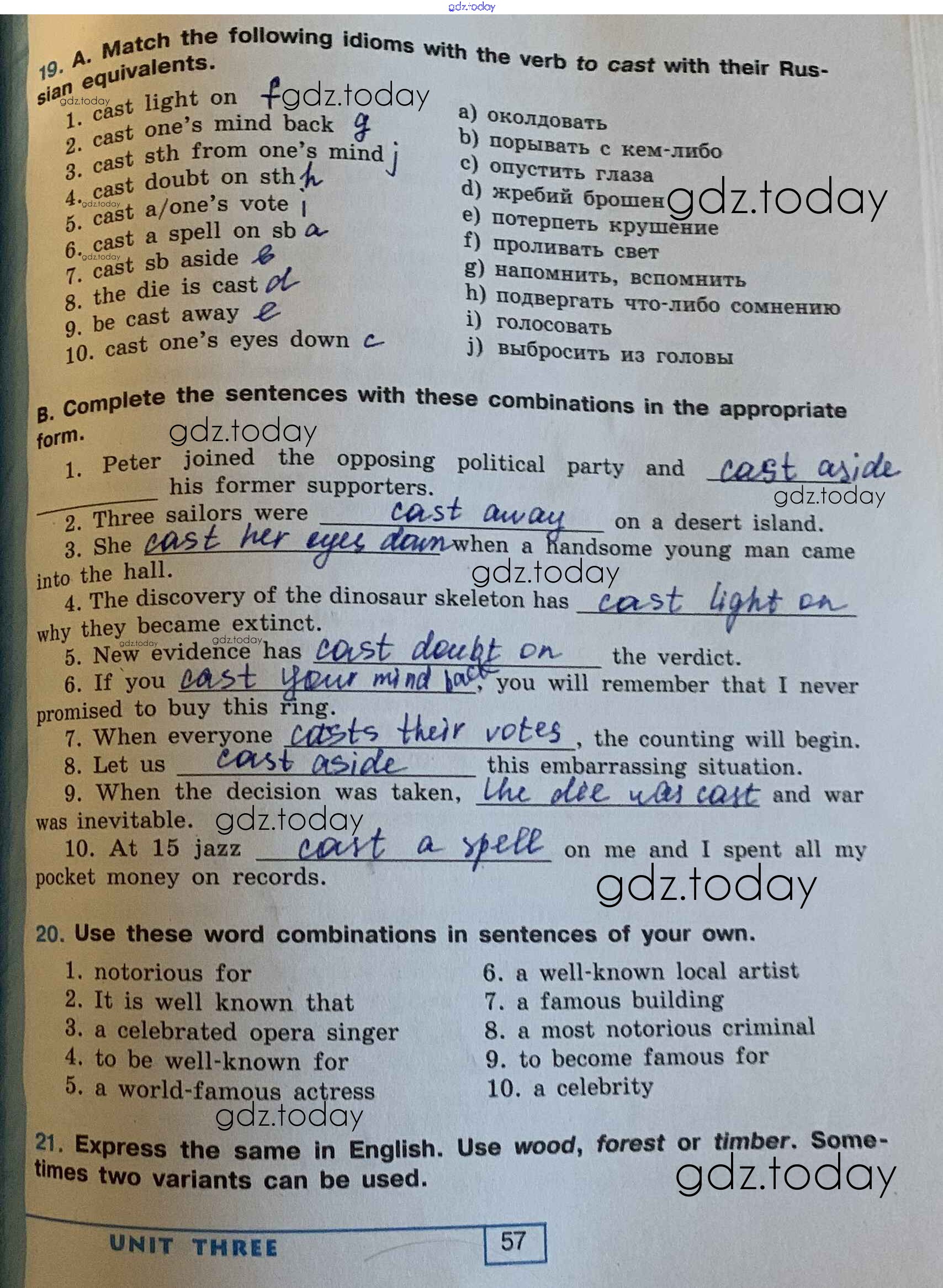 На страницах сайта gdz.today вы найдете учебный и вспомогательный материал, направленный на улучшения знаний школьной программы. ГДЗ - онлайн мир знаний Решение. Unit 3. You Are Only a Teenager Once стр. 57 Рабочей тетради по Английскому языку для 9 класса Афанасьева, Михеева Углубленный уровень Просвещение УМК 2016