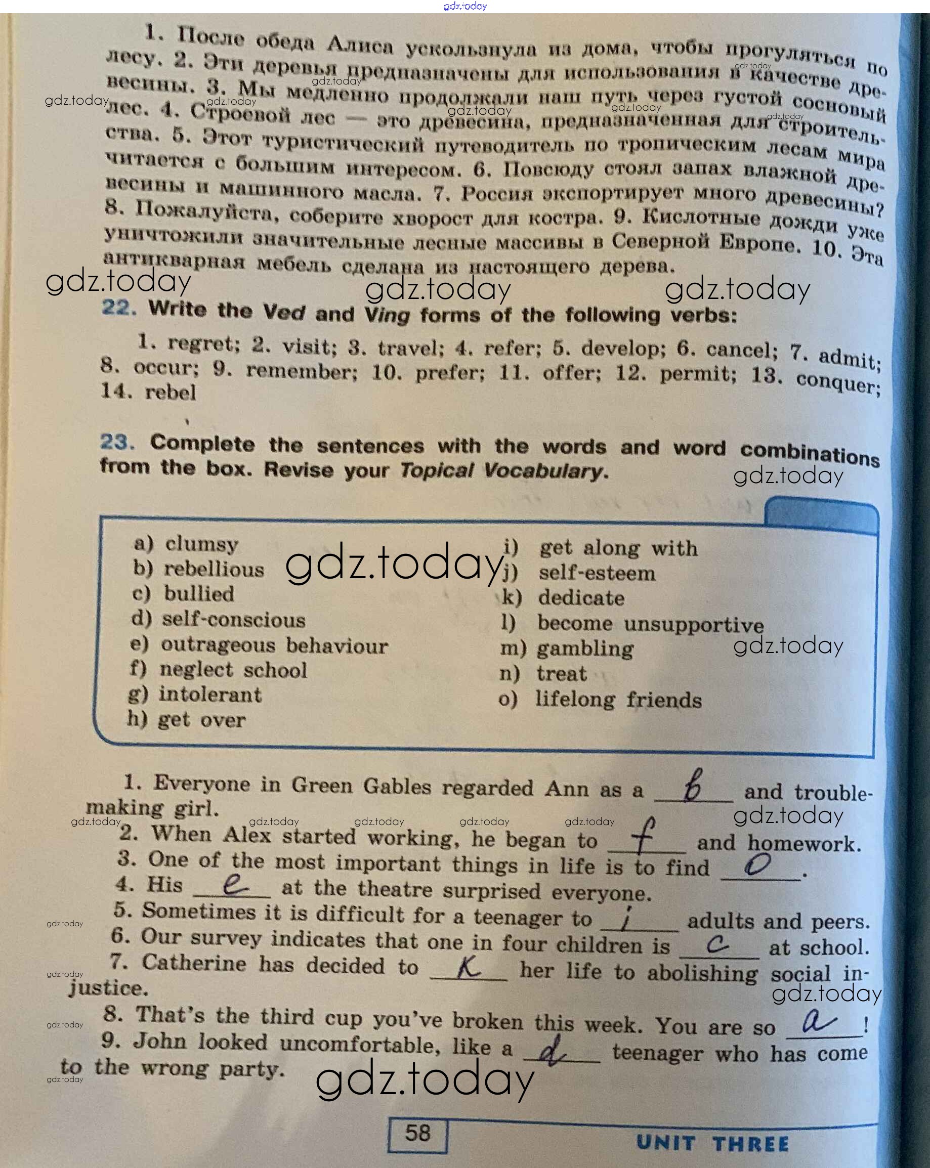 На страницах сайта gdz.today вы найдете учебный и вспомогательный материал, направленный на улучшения знаний школьной программы. ГДЗ - онлайн мир знаний Решение. Unit 3. You Are Only a Teenager Once стр. 58 Рабочей тетради по Английскому языку для 9 класса Афанасьева, Михеева Углубленный уровень Просвещение УМК 2016
