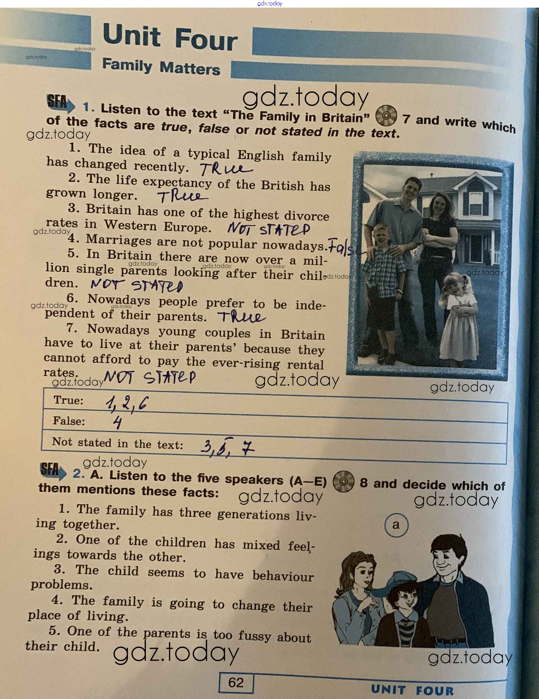 На страницах сайта gdz.today вы найдете учебный и вспомогательный материал, направленный на улучшения знаний школьной программы. ГДЗ - онлайн мир знаний Решение. Unit 4. Family Matters стр. 62 Рабочей тетради по Английскому языку для 9 класса Афанасьева, Михеева Углубленный уровень Просвещение УМК 2016