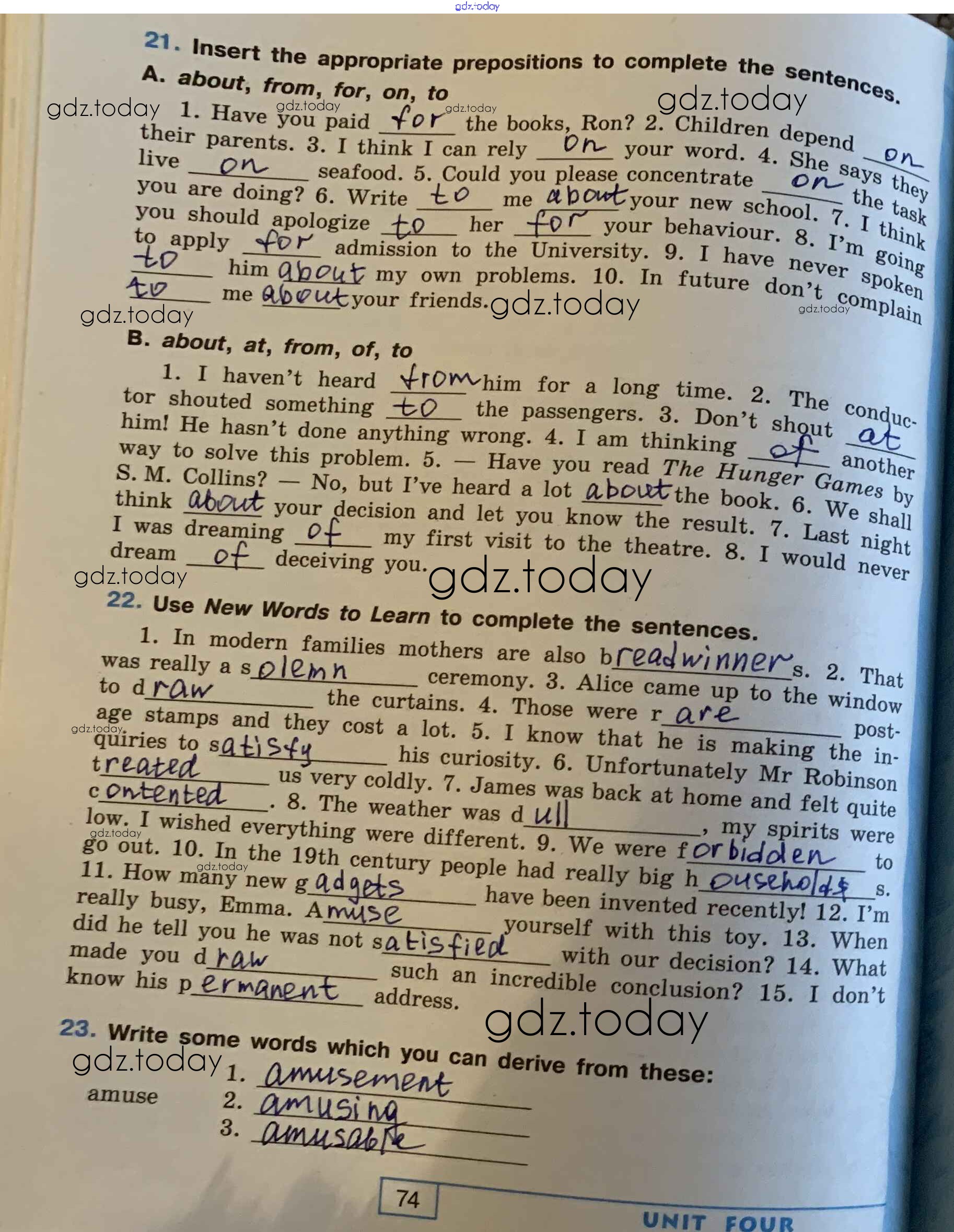На страницах сайта gdz.today вы найдете учебный и вспомогательный материал, направленный на улучшения знаний школьной программы. ГДЗ - онлайн мир знаний Решение. Unit 4. Family Matters стр. 74 Рабочей тетради по Английскому языку для 9 класса Афанасьева, Михеева Углубленный уровень Просвещение УМК 2016