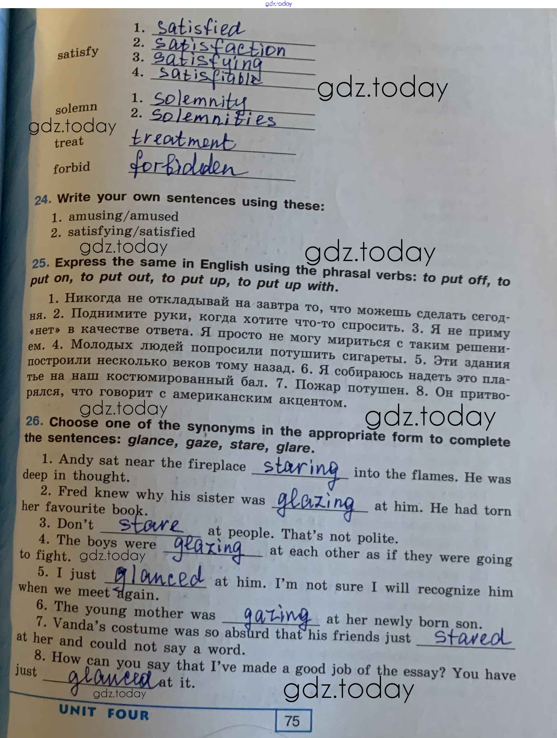 На страницах сайта gdz.today вы найдете учебный и вспомогательный материал, направленный на улучшения знаний школьной программы. ГДЗ - онлайн мир знаний Решение. Unit 4. Family Matters стр. 75 Рабочей тетради по Английскому языку для 9 класса Афанасьева, Михеева Углубленный уровень Просвещение УМК 2016