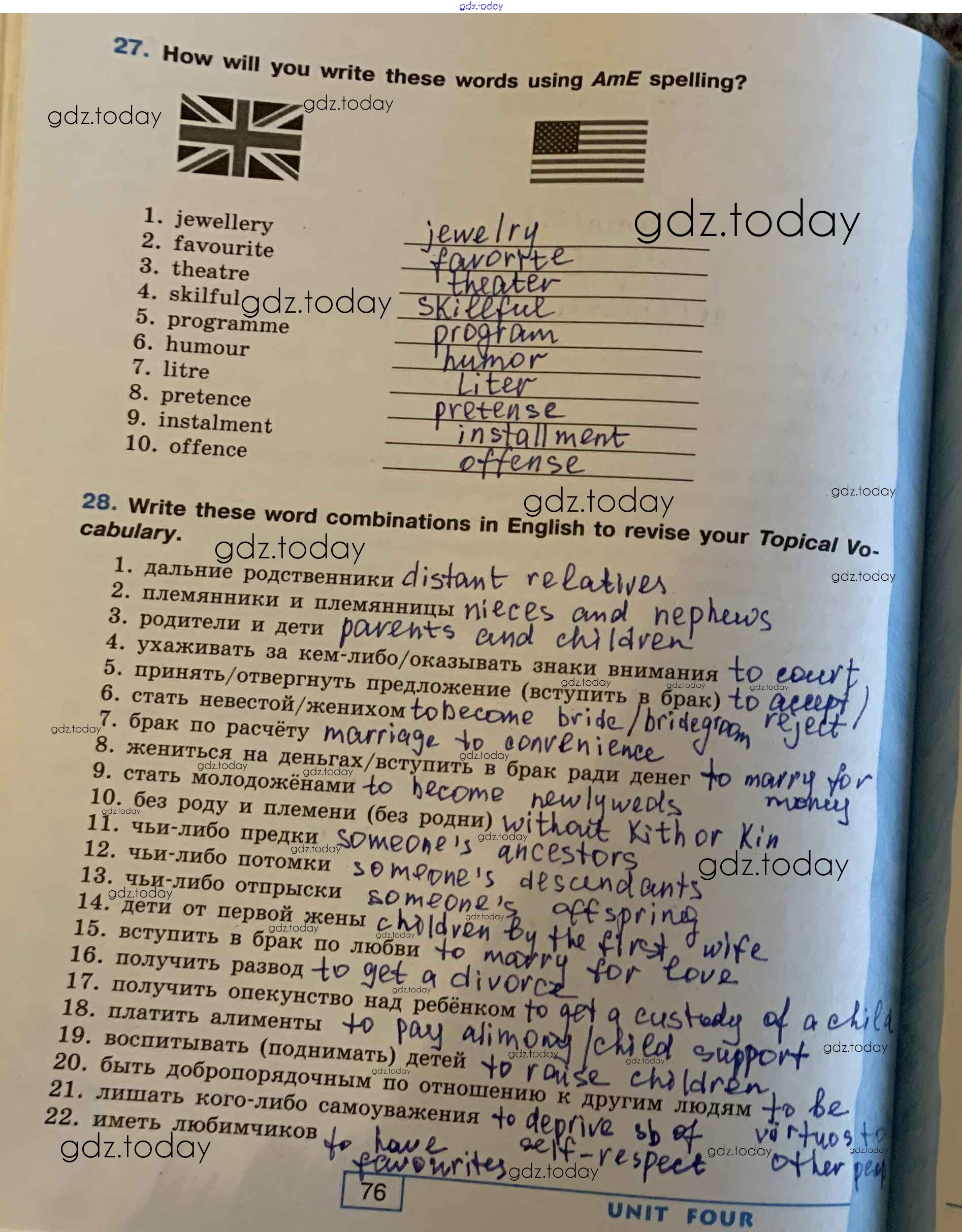 На страницах сайта gdz.today вы найдете учебный и вспомогательный материал, направленный на улучшения знаний школьной программы. ГДЗ - онлайн мир знаний Решение. Unit 4. Family Matters стр. 76 Рабочей тетради по Английскому языку для 9 класса Афанасьева, Михеева Углубленный уровень Просвещение УМК 2016
