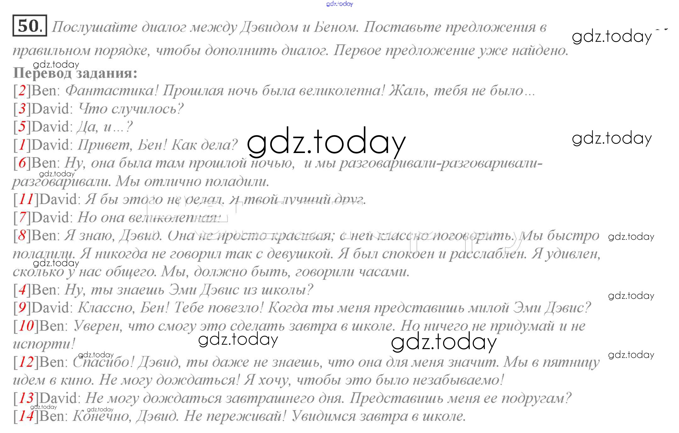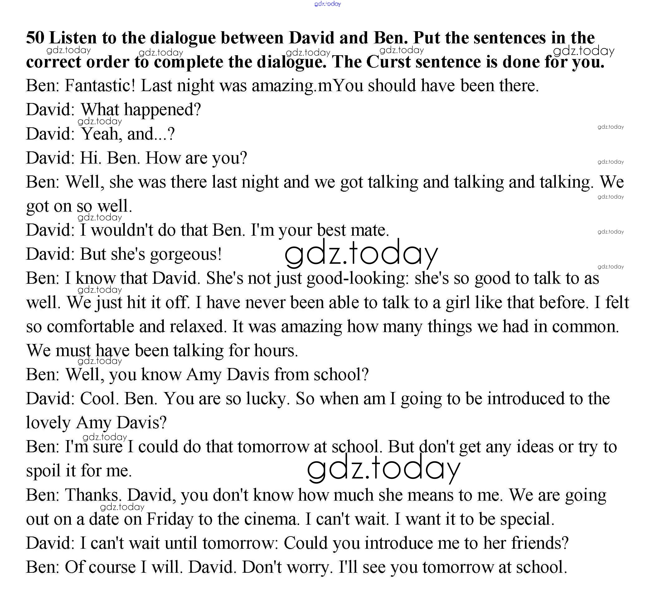 На страницах сайта gdz.today вы найдете учебный и вспомогательный материал, направленный на улучшения знаний школьной программы. ГДЗ - онлайн мир знаний Решение к Unit 1 50 Учебнику по Английскому языку для 9 класса Биболетова, Бабушис Титул Enjoy English 2014