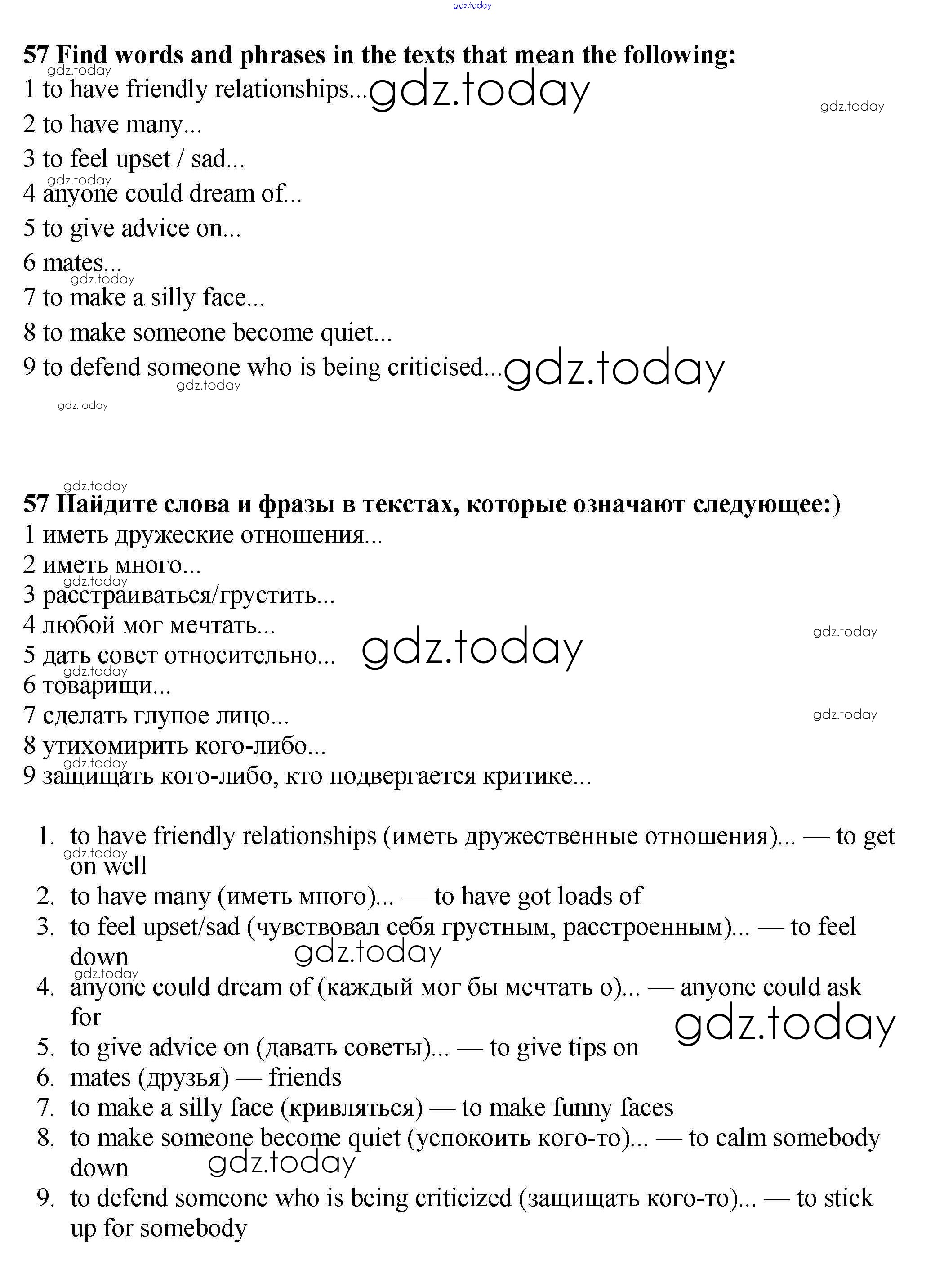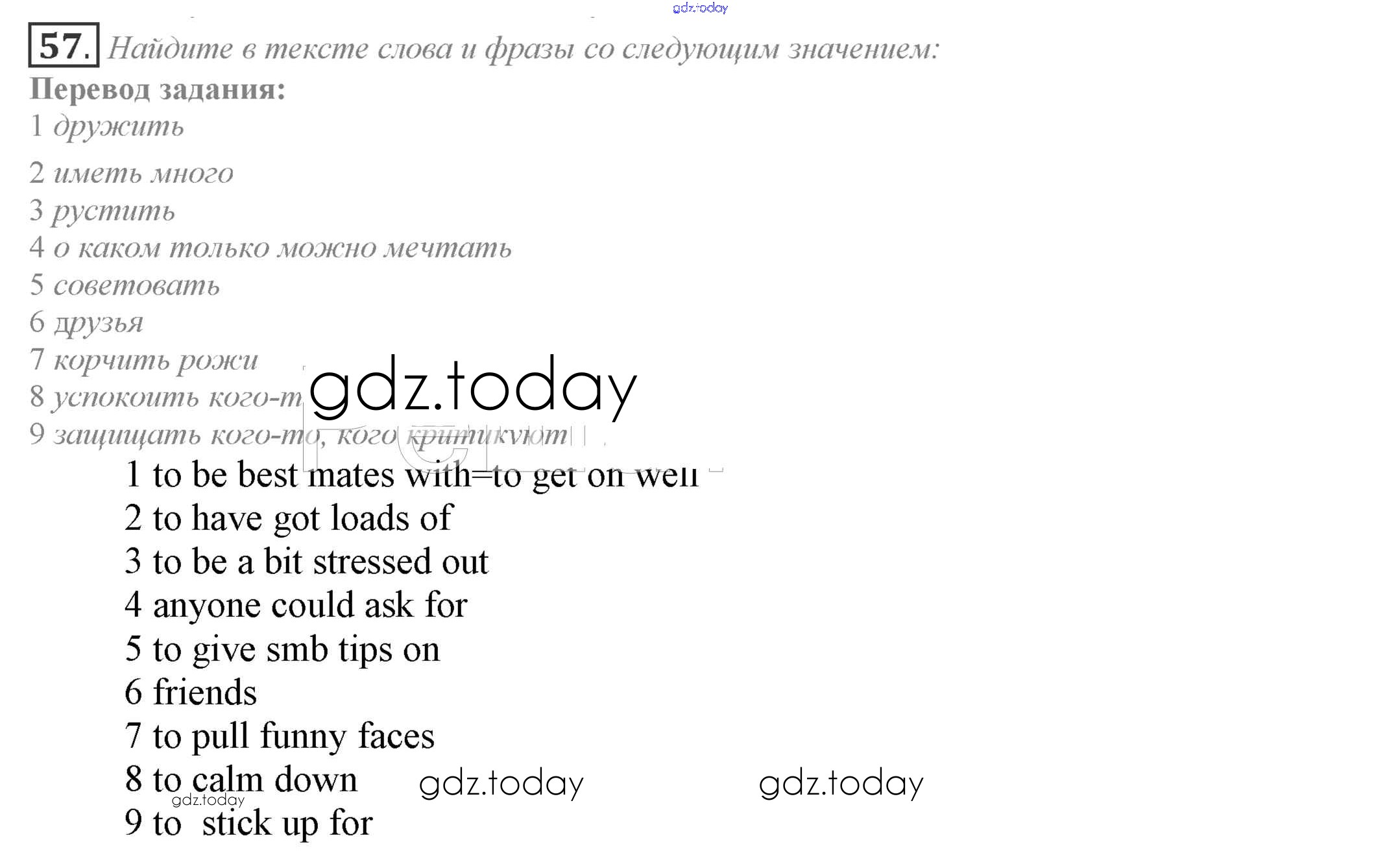 На страницах сайта gdz.today вы найдете учебный и вспомогательный материал, направленный на улучшения знаний школьной программы. ГДЗ - онлайн мир знаний Решение к Unit 1 57 Учебнику по Английскому языку для 9 класса Биболетова, Бабушис Титул Enjoy English 2014