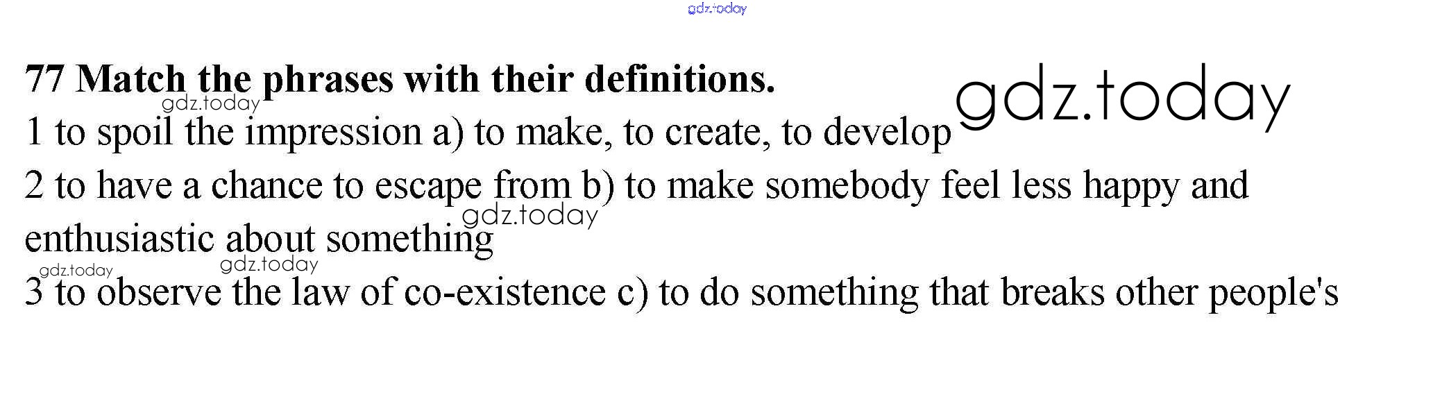 На страницах сайта gdz.today вы найдете учебный и вспомогательный материал, направленный на улучшения знаний школьной программы. ГДЗ - онлайн мир знаний Решение к Unit 1 77 Учебнику по Английскому языку для 9 класса Биболетова, Бабушис Титул Enjoy English 2014