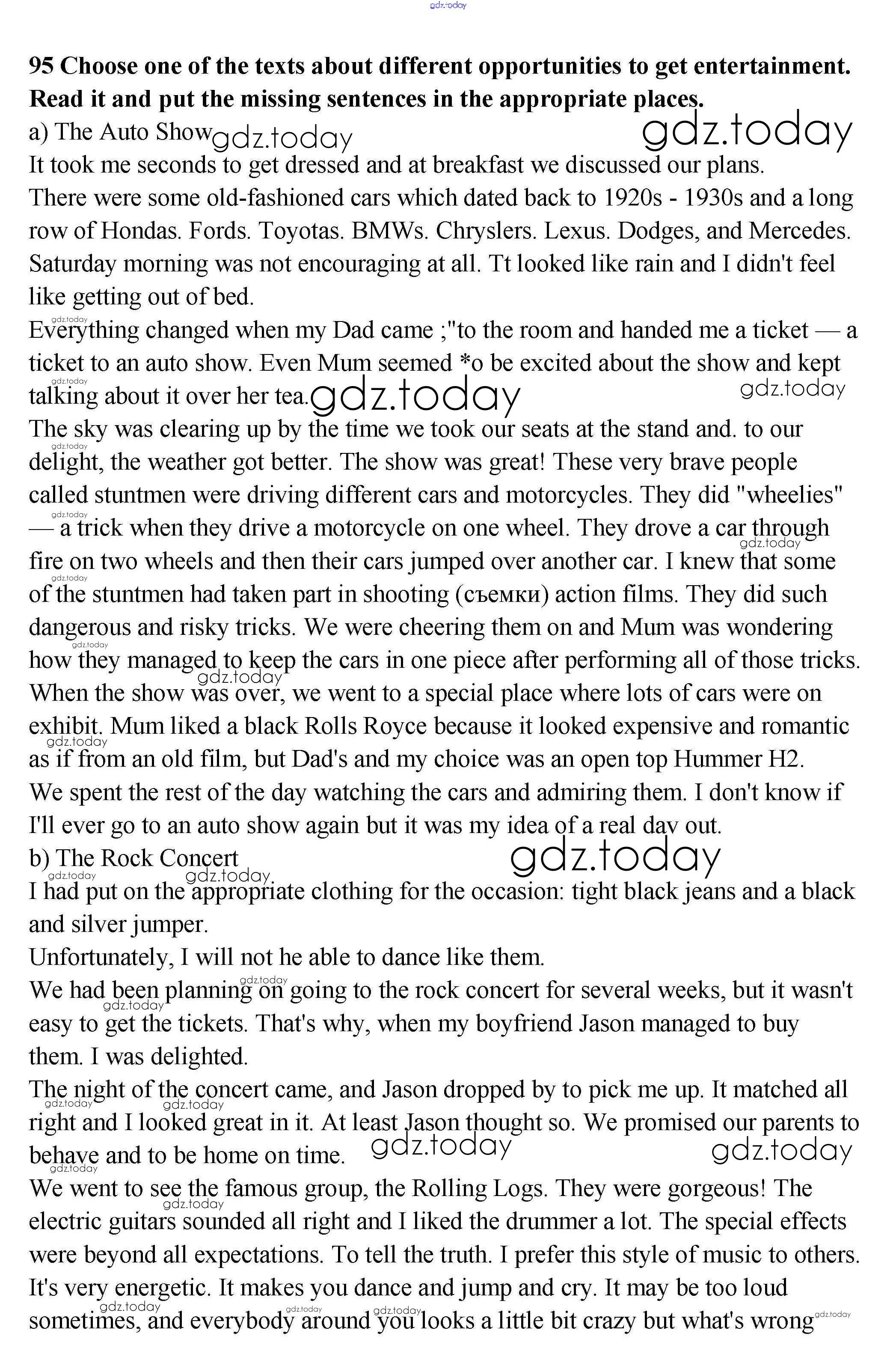 На страницах сайта gdz.today вы найдете учебный и вспомогательный материал, направленный на улучшения знаний школьной программы. ГДЗ - онлайн мир знаний Решение к Unit 1 95 Учебнику по Английскому языку для 9 класса Биболетова, Бабушис Титул Enjoy English 2014