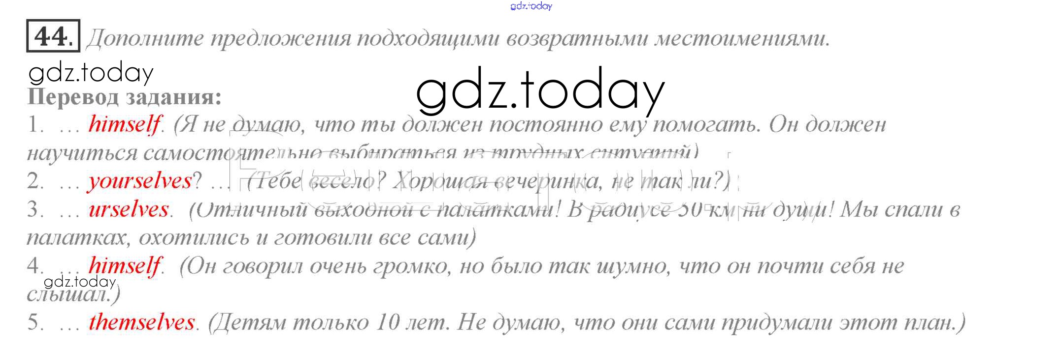 На страницах сайта gdz.today вы найдете учебный и вспомогательный материал, направленный на улучшения знаний школьной программы. ГДЗ - онлайн мир знаний Решение к Unit 2 44 Учебнику по Английскому языку для 9 класса Биболетова, Бабушис Титул Enjoy English 2014