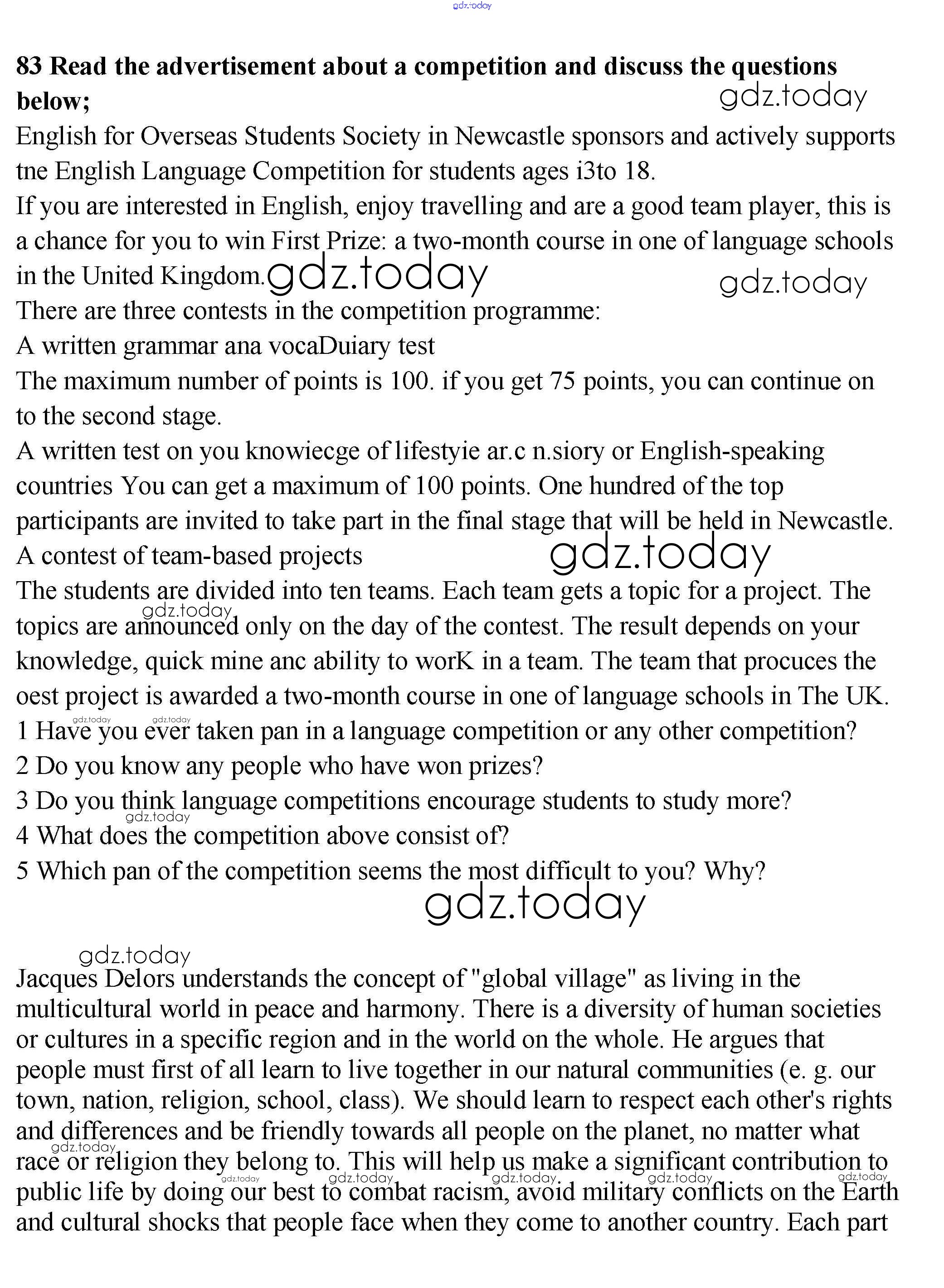 На страницах сайта gdz.today вы найдете учебный и вспомогательный материал, направленный на улучшения знаний школьной программы. ГДЗ - онлайн мир знаний Решение к Unit 2 83 Учебнику по Английскому языку для 9 класса Биболетова, Бабушис Титул Enjoy English 2014