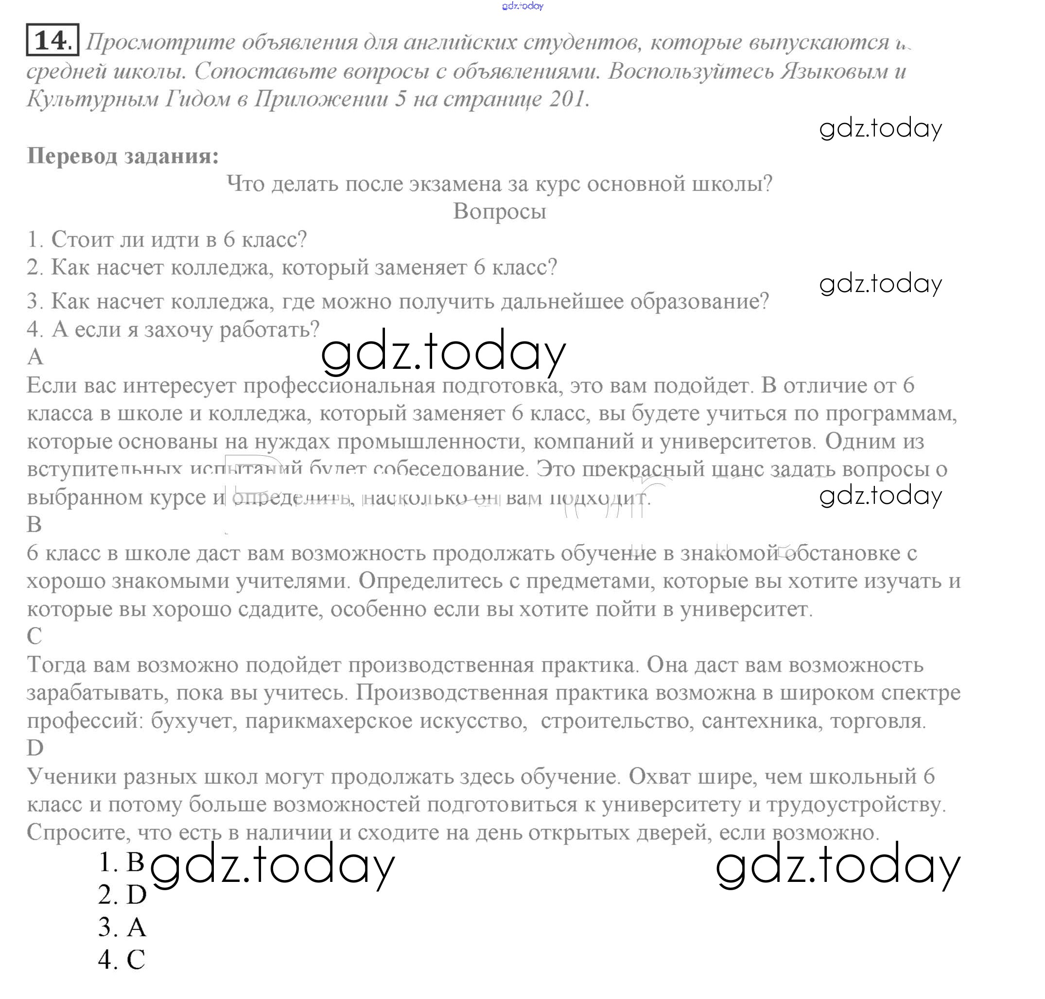 На страницах сайта gdz.today вы найдете учебный и вспомогательный материал, направленный на улучшения знаний школьной программы. ГДЗ - онлайн мир знаний Решение к Unit 4 14 Учебнику по Английскому языку для 9 класса Биболетова, Бабушис Титул Enjoy English 2014
