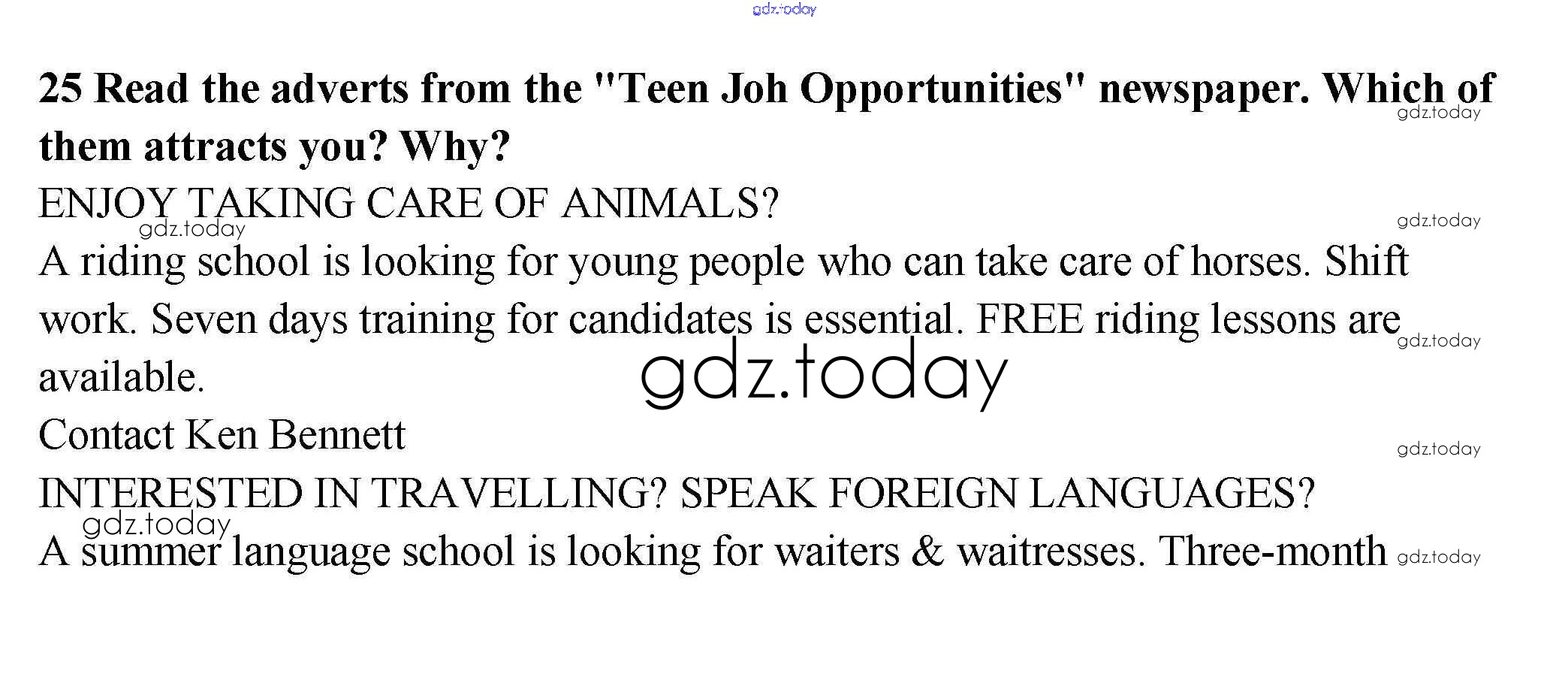 На страницах сайта gdz.today вы найдете учебный и вспомогательный материал, направленный на улучшения знаний школьной программы. ГДЗ - онлайн мир знаний Решение к Unit 4 25 Учебнику по Английскому языку для 9 класса Биболетова, Бабушис Титул Enjoy English 2014