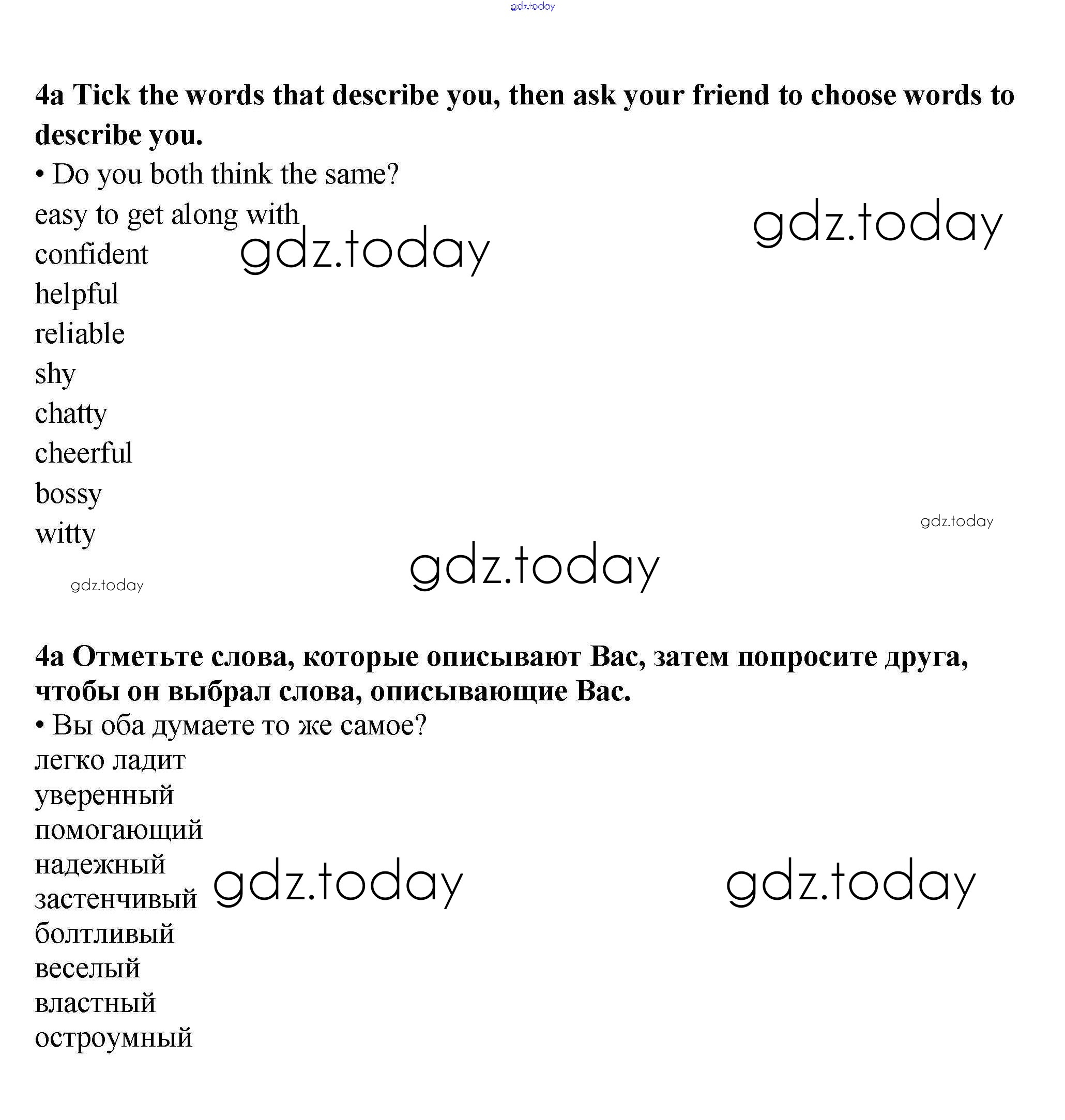 На страницах сайта gdz.today вы найдете учебный и вспомогательный материал, направленный на улучшения знаний школьной программы. ГДЗ - онлайн мир знаний Lesson 3-4 Решение к Unit 1. People with personality 4a Учебнику по Английскому языку для 9 класса Гроза, Дворецкая Титул New Millennium 2010