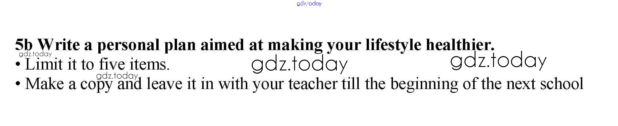 На страницах сайта gdz.today вы найдете учебный и вспомогательный материал, направленный на улучшения знаний школьной программы. ГДЗ - онлайн мир знаний Lesson 5-6 Решение к Unit 10. Healthy body, healthy mind 5b Учебнику по Английскому языку для 9 класса Гроза, Дворецкая Титул New Millennium 2010