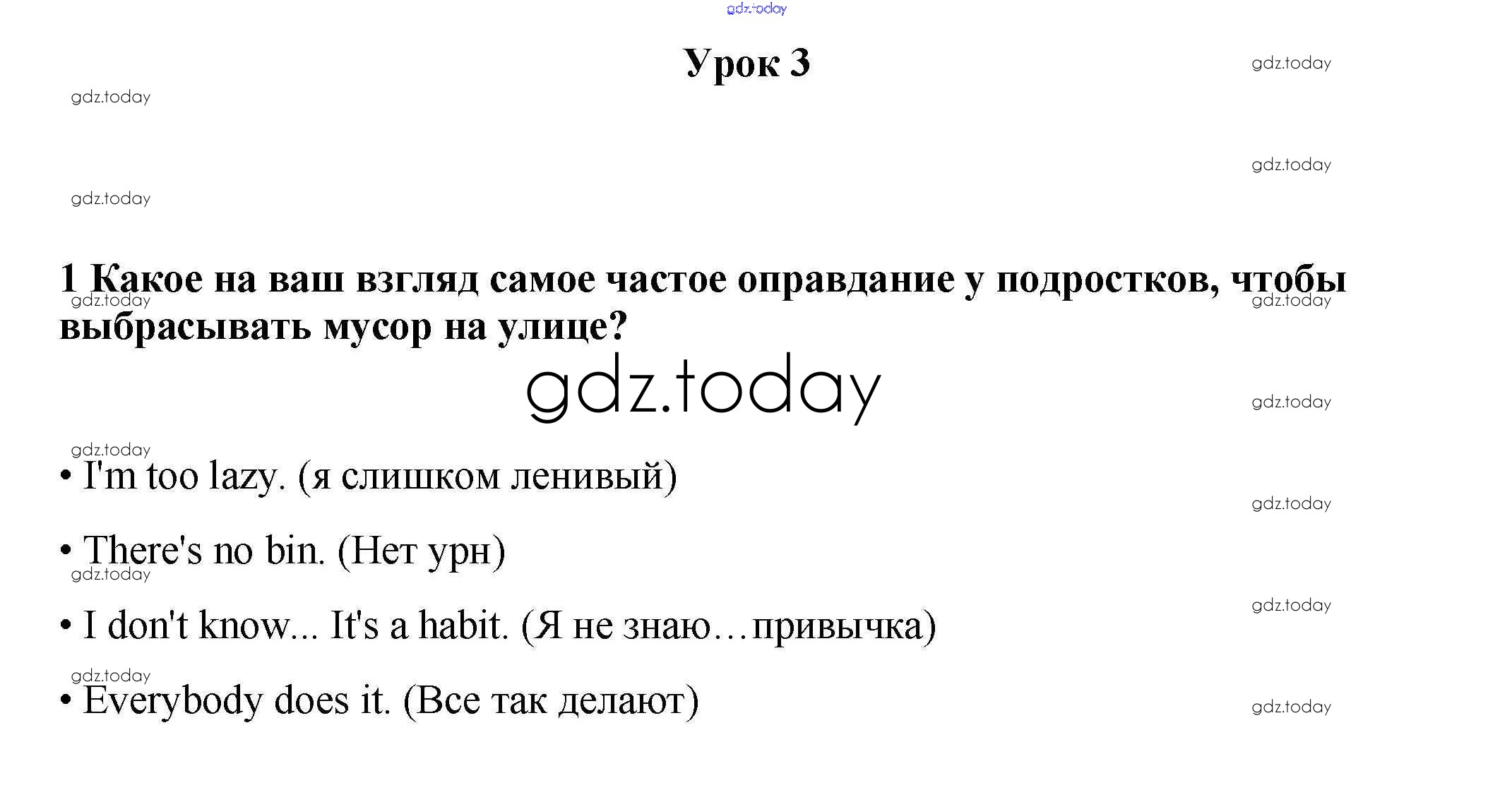 На страницах сайта gdz.today вы найдете учебный и вспомогательный материал, направленный на улучшения знаний школьной программы. ГДЗ - онлайн мир знаний Lesson 3 Решение к Unit 2. Our fragile world 1 Учебнику по Английскому языку для 9 класса Гроза, Дворецкая Титул New Millennium 2010