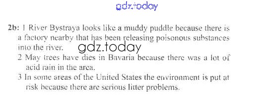На страницах сайта gdz.today вы найдете учебный и вспомогательный материал, направленный на улучшения знаний школьной программы. ГДЗ - онлайн мир знаний Lesson 4-5 Решение к Unit 2. Our fragile world 2b Учебнику по Английскому языку для 9 класса Гроза, Дворецкая Титул New Millennium 2010