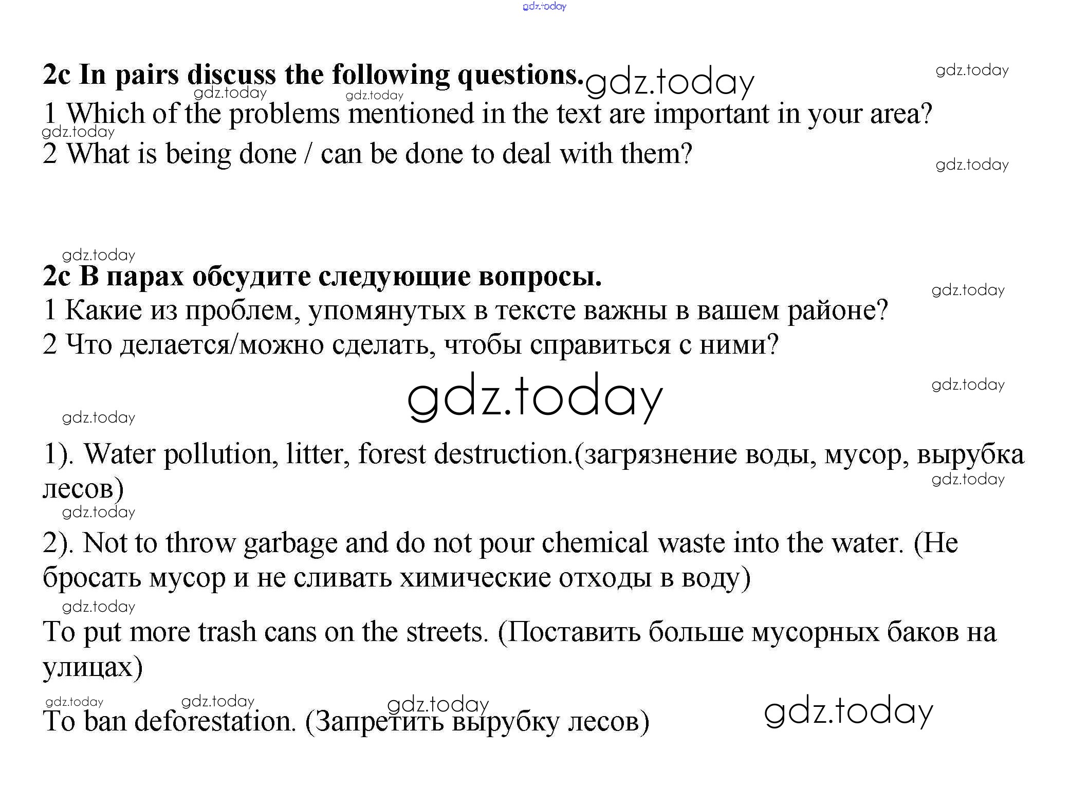 На страницах сайта gdz.today вы найдете учебный и вспомогательный материал, направленный на улучшения знаний школьной программы. ГДЗ - онлайн мир знаний Lesson 4-5 Решение к Unit 2. Our fragile world 2c Учебнику по Английскому языку для 9 класса Гроза, Дворецкая Титул New Millennium 2010