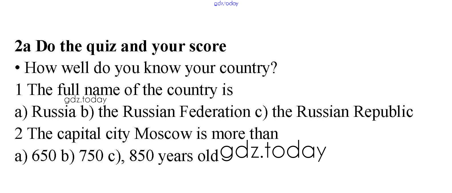 На страницах сайта gdz.today вы найдете учебный и вспомогательный материал, направленный на улучшения знаний школьной программы. ГДЗ - онлайн мир знаний Lesson 1 Решение к Unit 4. Our varied land 2a Учебнику по Английскому языку для 9 класса Гроза, Дворецкая Титул New Millennium 2010