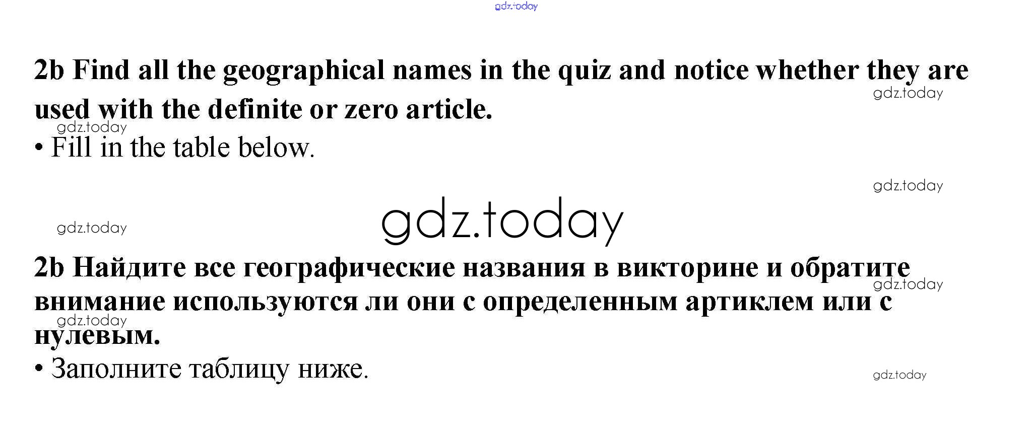 На страницах сайта gdz.today вы найдете учебный и вспомогательный материал, направленный на улучшения знаний школьной программы. ГДЗ - онлайн мир знаний Lesson 1 Решение к Unit 4. Our varied land 2b Учебнику по Английскому языку для 9 класса Гроза, Дворецкая Титул New Millennium 2010