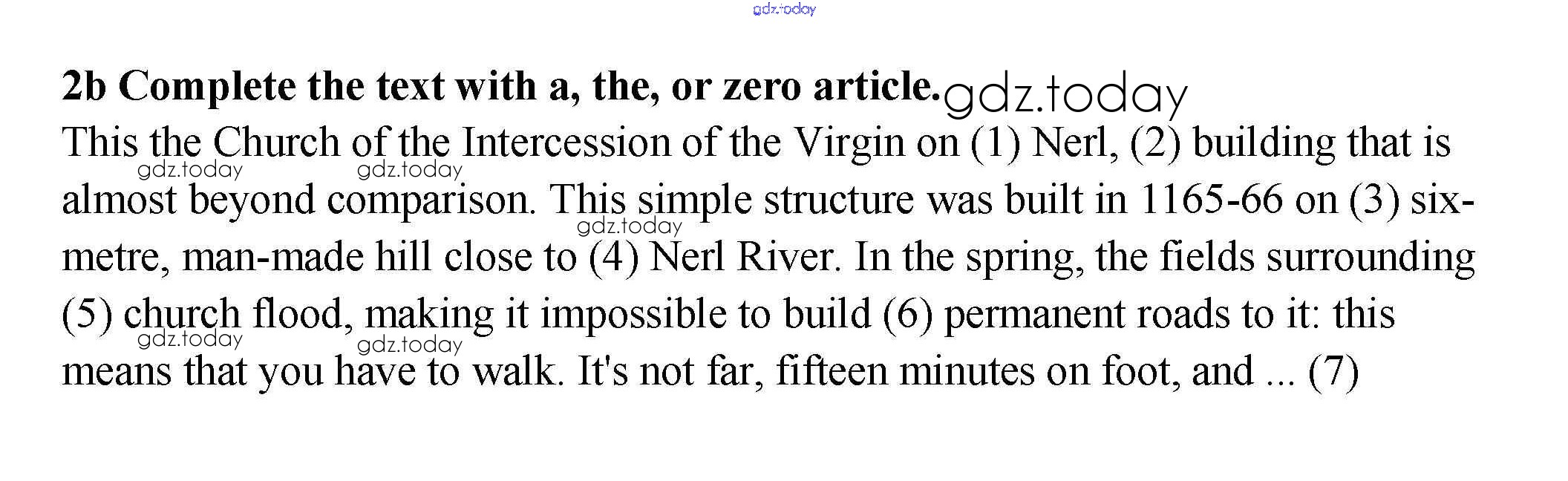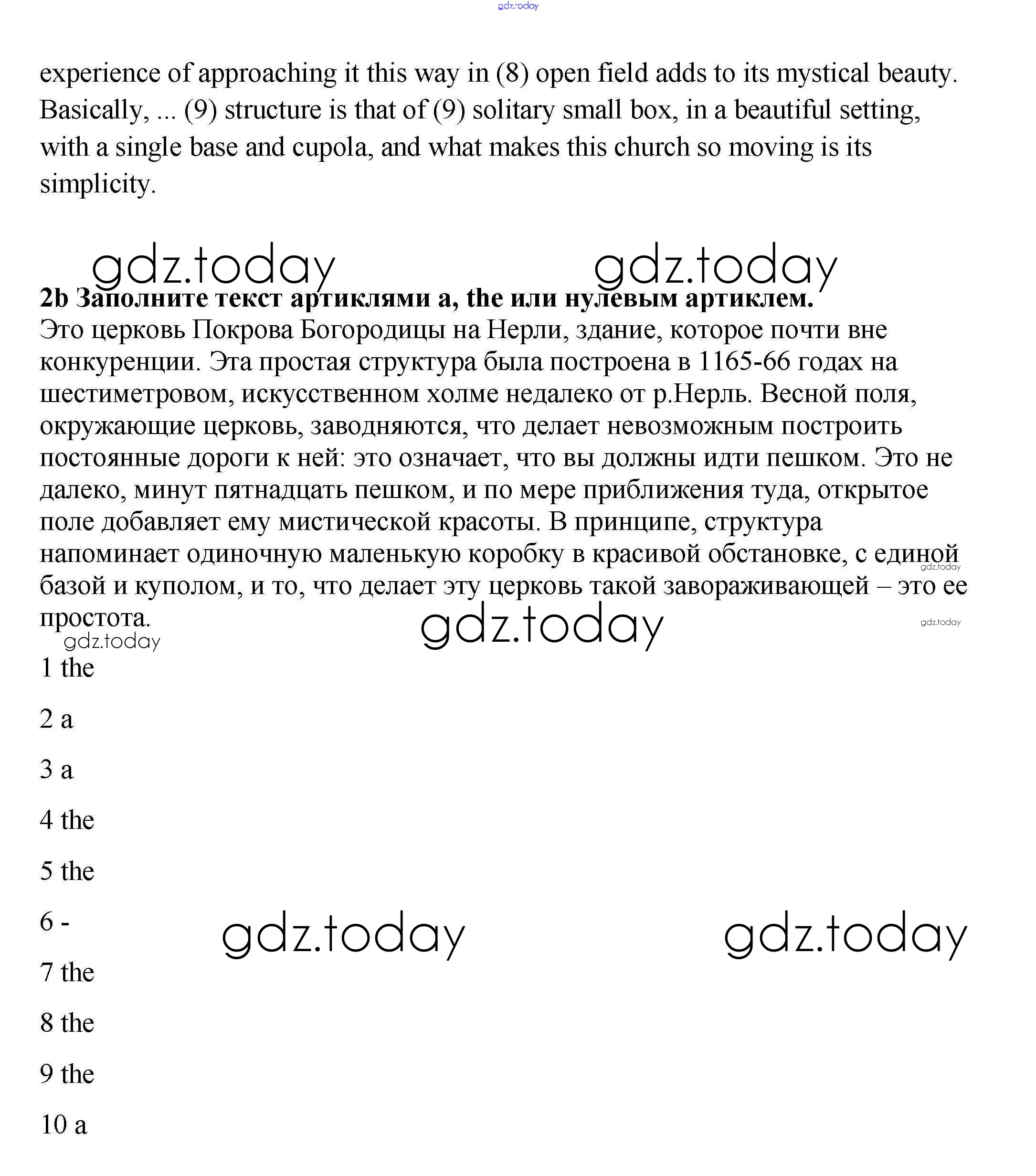 На страницах сайта gdz.today вы найдете учебный и вспомогательный материал, направленный на улучшения знаний школьной программы. ГДЗ - онлайн мир знаний Lesson 2-3 Решение к Unit 4. Our varied land 2b Учебнику по Английскому языку для 9 класса Гроза, Дворецкая Титул New Millennium 2010