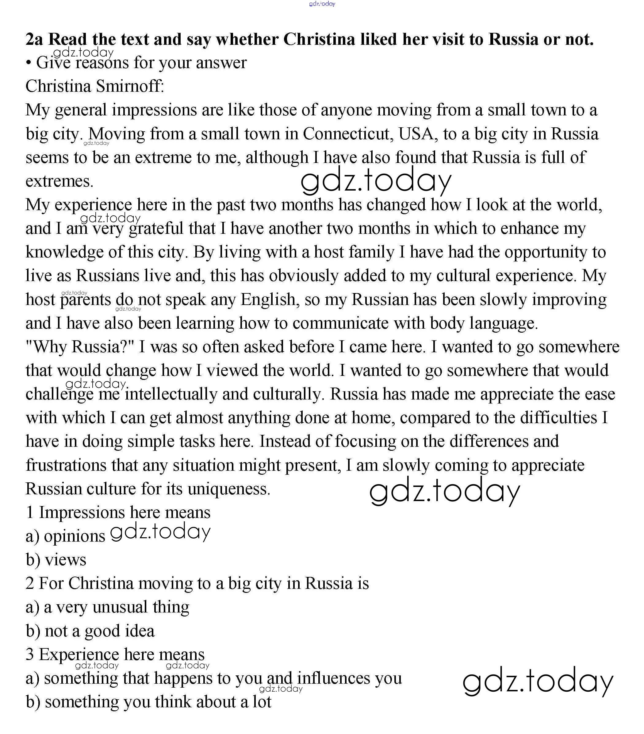 На страницах сайта gdz.today вы найдете учебный и вспомогательный материал, направленный на улучшения знаний школьной программы. ГДЗ - онлайн мир знаний Lesson 4-5 Решение к Unit 4. Our varied land 2a Учебнику по Английскому языку для 9 класса Гроза, Дворецкая Титул New Millennium 2010