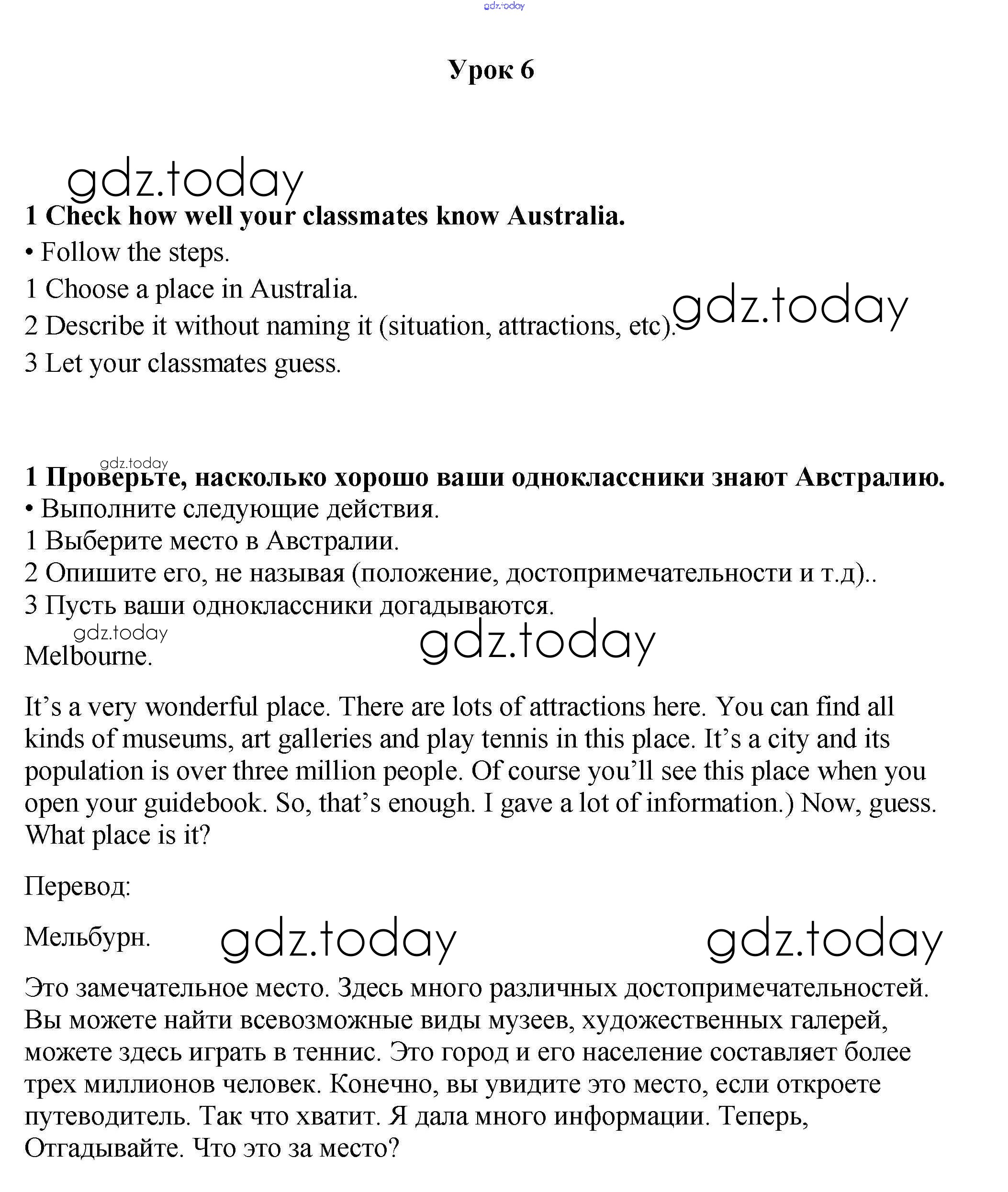 На страницах сайта gdz.today вы найдете учебный и вспомогательный материал, направленный на улучшения знаний школьной программы. ГДЗ - онлайн мир знаний Lesson 6 Решение к Unit 5. Let's travel Australia! 1 Учебнику по Английскому языку для 9 класса Гроза, Дворецкая Титул New Millennium 2010