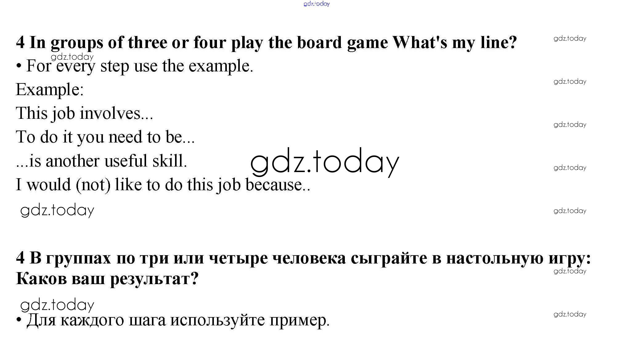 На страницах сайта gdz.today вы найдете учебный и вспомогательный материал, направленный на улучшения знаний школьной программы. ГДЗ - онлайн мир знаний Lesson 1 Решение к Unit 7. What's your line? 4 Учебнику по Английскому языку для 9 класса Гроза, Дворецкая Титул New Millennium 2010