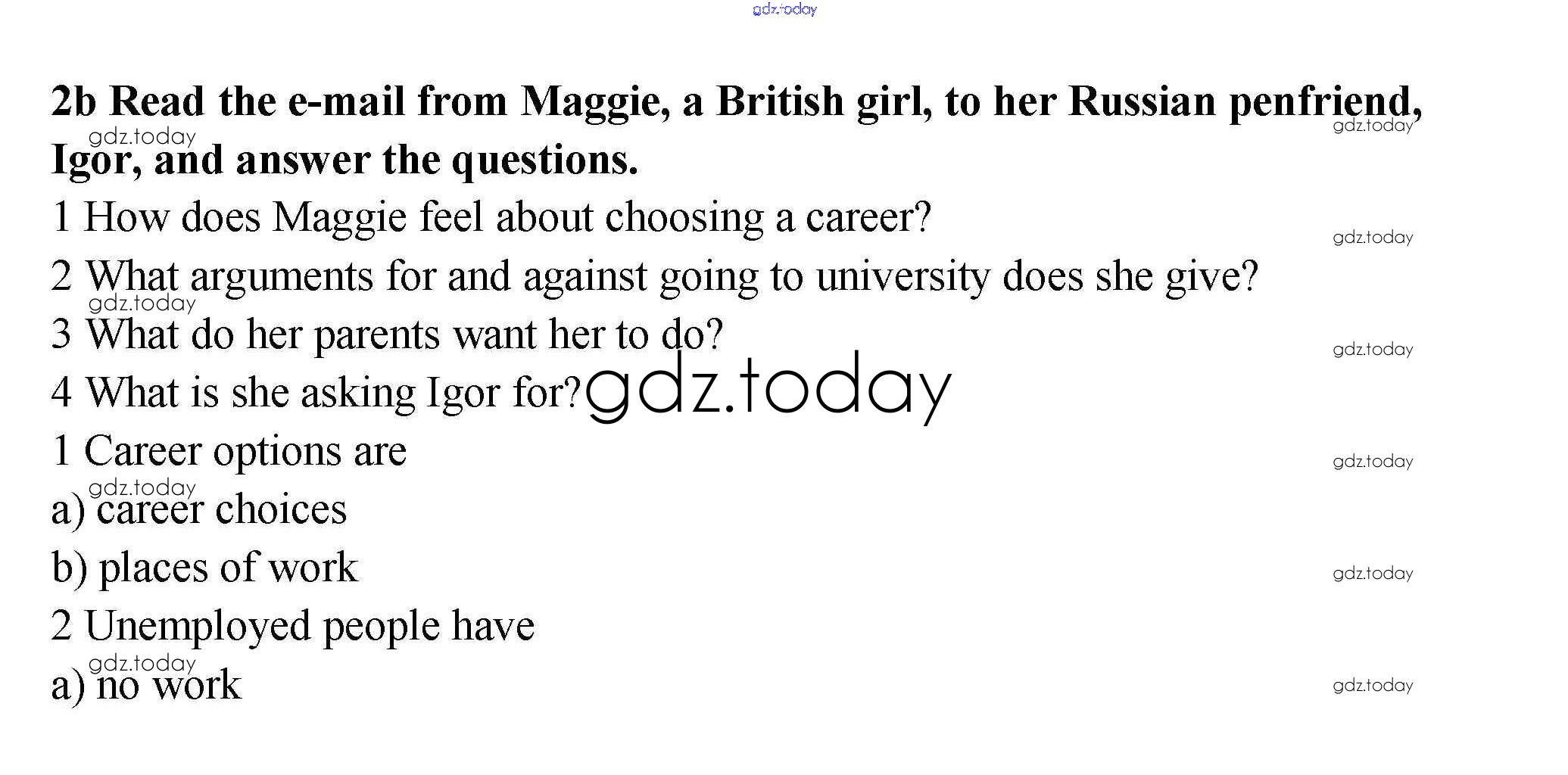 На страницах сайта gdz.today вы найдете учебный и вспомогательный материал, направленный на улучшения знаний школьной программы. ГДЗ - онлайн мир знаний Lesson 3-4 Решение к Unit 7. What's your line? 2b Учебнику по Английскому языку для 9 класса Гроза, Дворецкая Титул New Millennium 2010