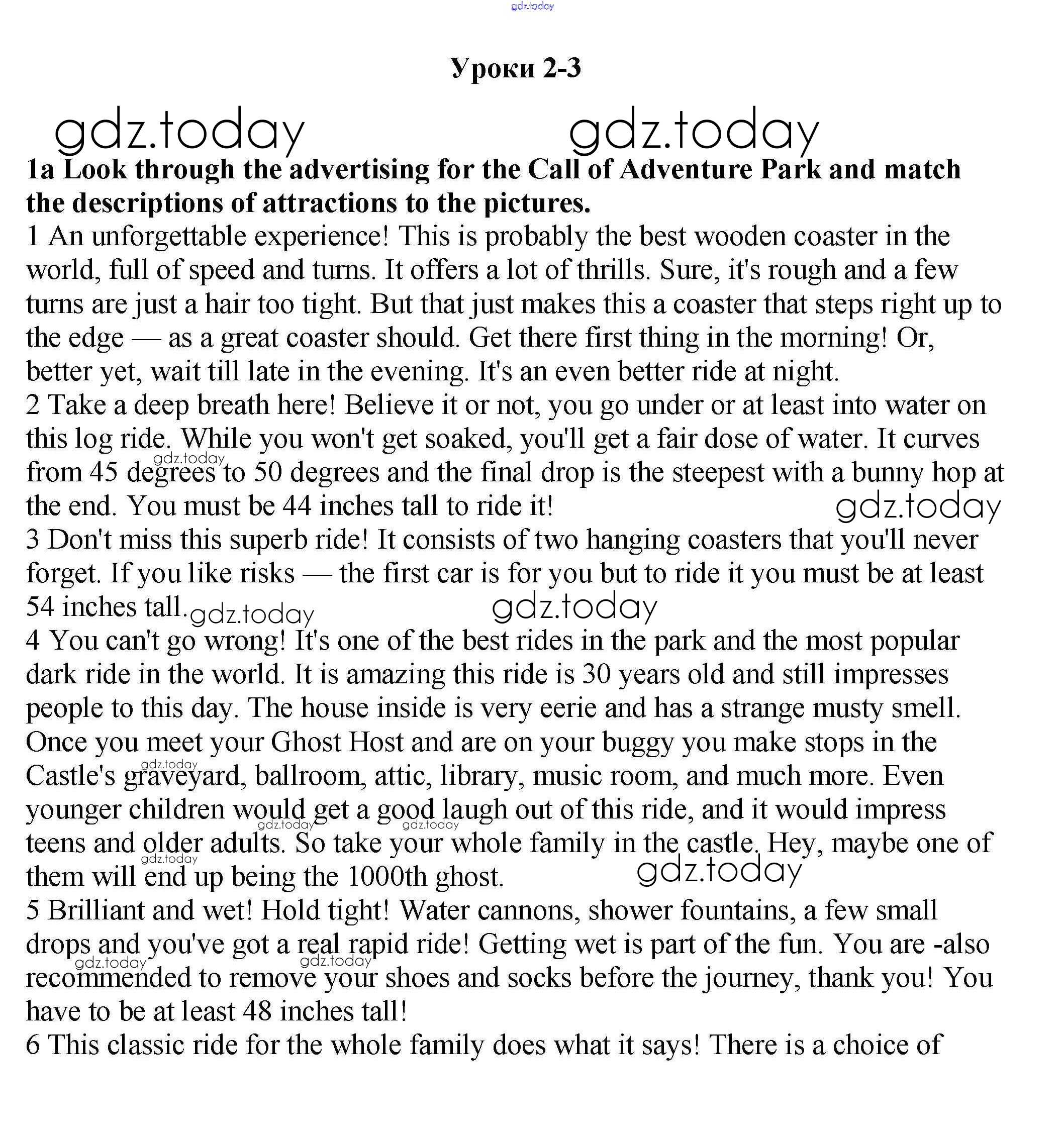 На страницах сайта gdz.today вы найдете учебный и вспомогательный материал, направленный на улучшения знаний школьной программы. ГДЗ - онлайн мир знаний Lesson 2-3 Решение к Unit 8. Making your day out fun 1a Учебнику по Английскому языку для 9 класса Гроза, Дворецкая Титул New Millennium 2010