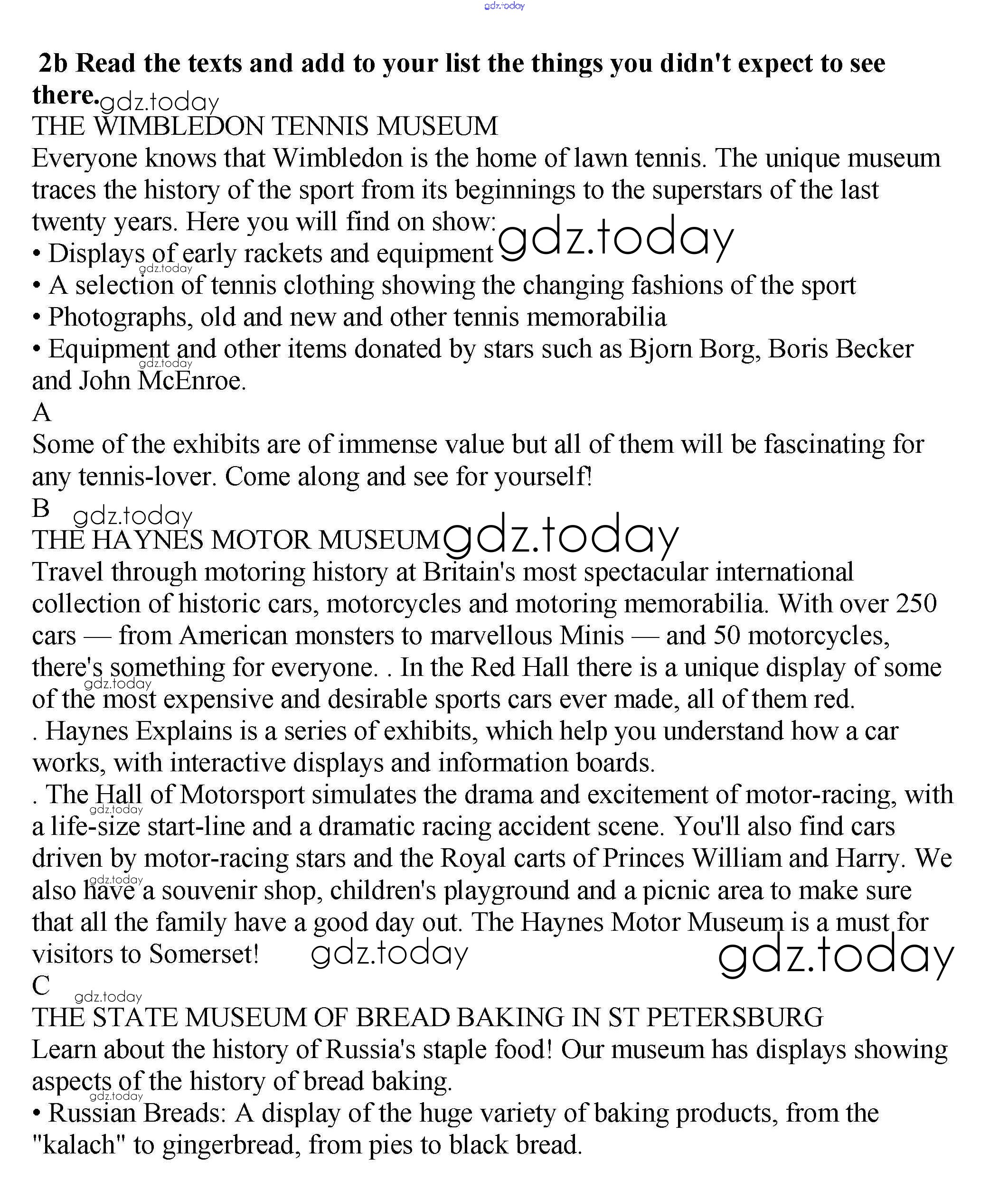 На страницах сайта gdz.today вы найдете учебный и вспомогательный материал, направленный на улучшения знаний школьной программы. ГДЗ - онлайн мир знаний Lesson 4 Решение к Unit 8. Making your day out fun 2b Учебнику по Английскому языку для 9 класса Гроза, Дворецкая Титул New Millennium 2010