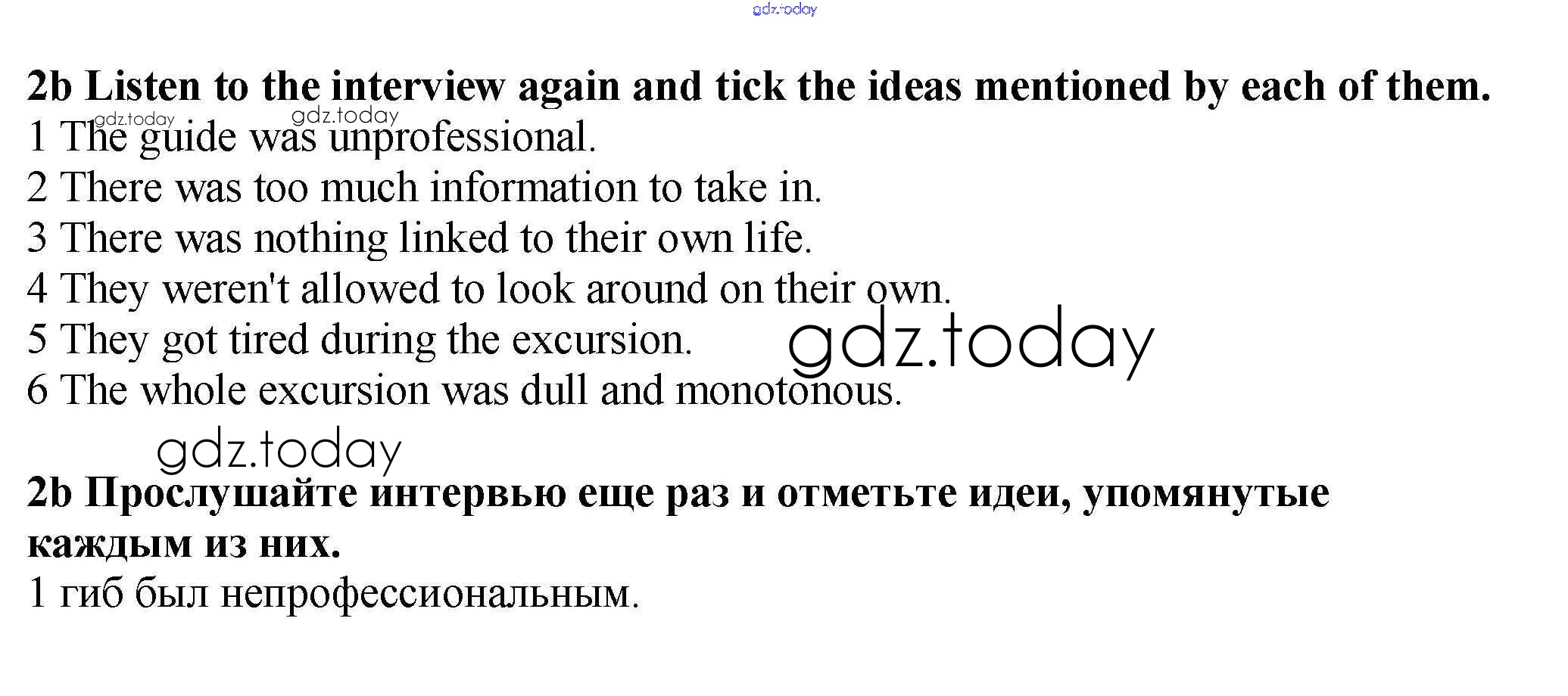 На страницах сайта gdz.today вы найдете учебный и вспомогательный материал, направленный на улучшения знаний школьной программы. ГДЗ - онлайн мир знаний Lesson 5-6 Решение к Unit 8. Making your day out fun 2b Учебнику по Английскому языку для 9 класса Гроза, Дворецкая Титул New Millennium 2010