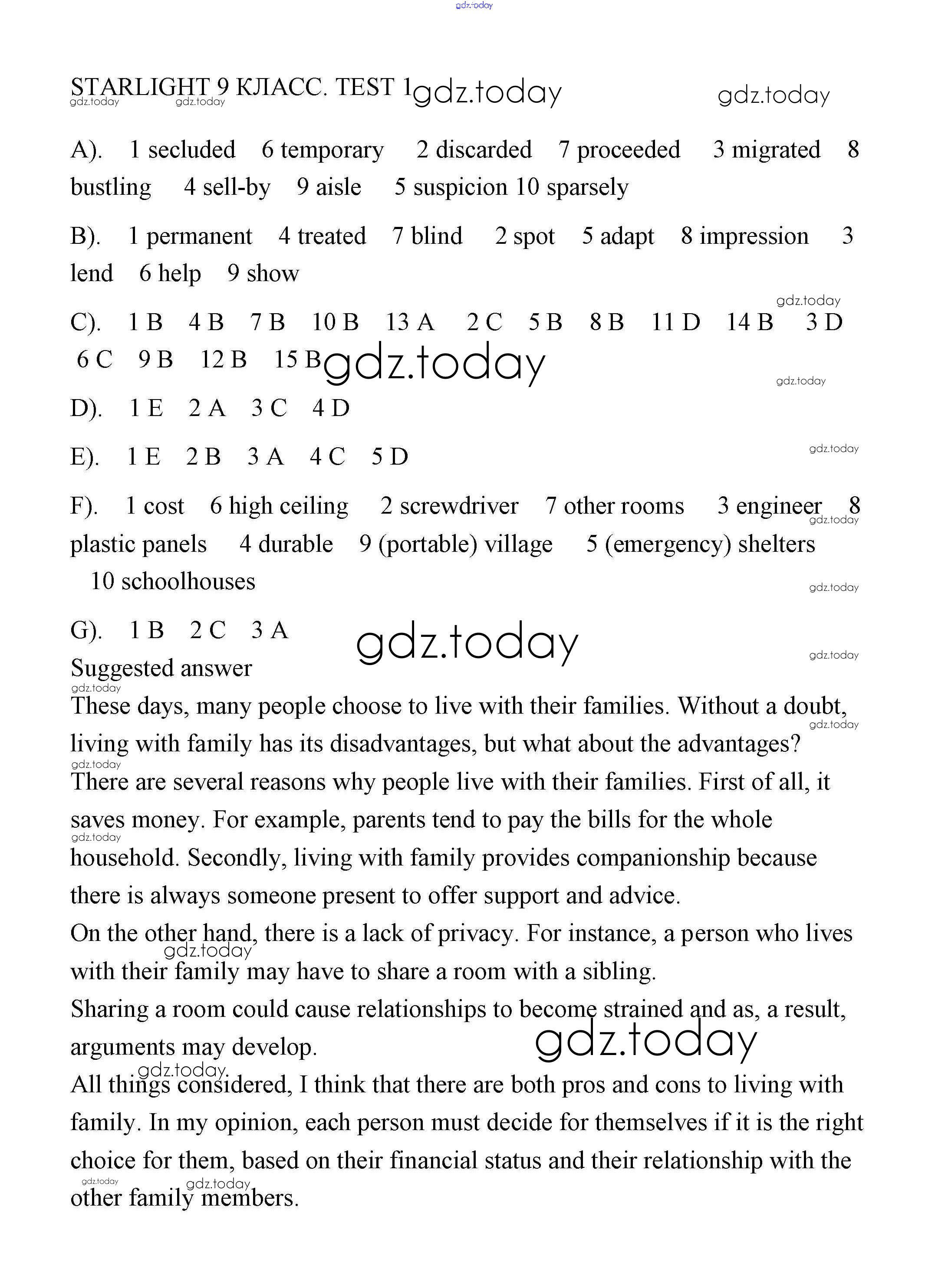 На страницах сайта gdz.today вы найдете учебный и вспомогательный материал, направленный на улучшения знаний школьной программы. ГДЗ - онлайн мир знаний Решение. Тесты 1 Контрольным заданиям по Английскому языку для 9 класса Баранова, Дули Углубленный уровень Просвещение Starlight 2015