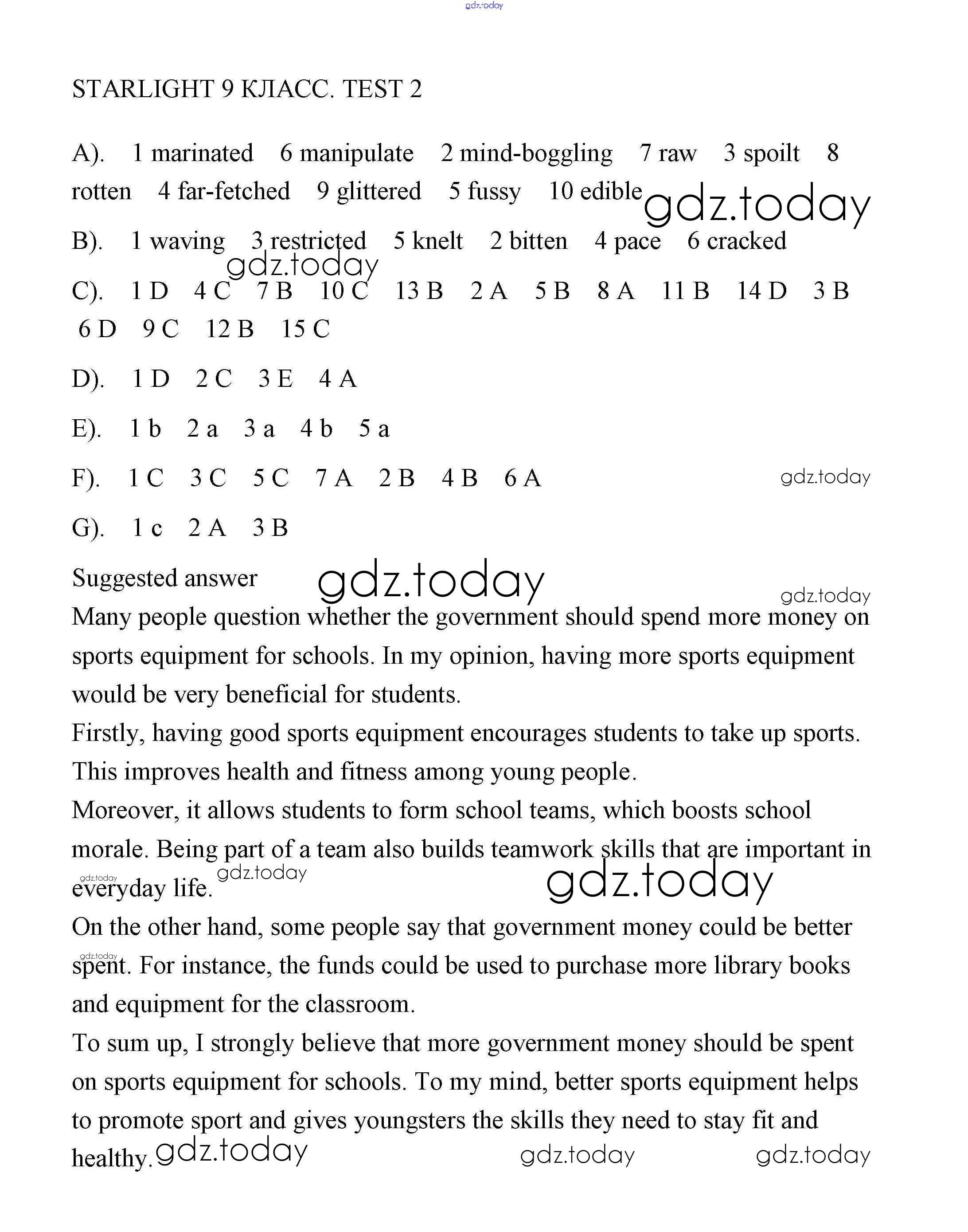 На страницах сайта gdz.today вы найдете учебный и вспомогательный материал, направленный на улучшения знаний школьной программы. ГДЗ - онлайн мир знаний Решение. Тесты 2 Контрольным заданиям по Английскому языку для 9 класса Баранова, Дули Углубленный уровень Просвещение Starlight 2015