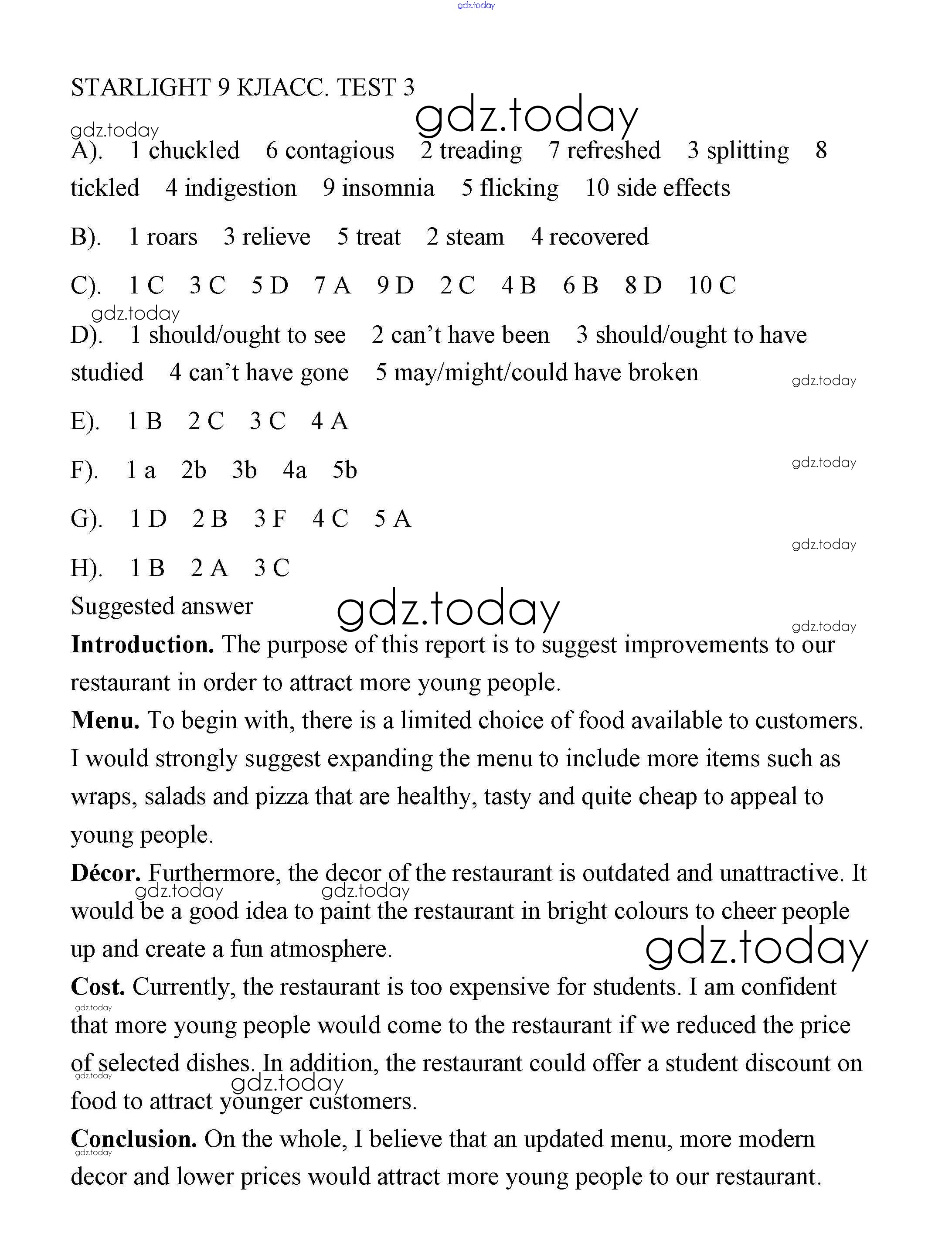 На страницах сайта gdz.today вы найдете учебный и вспомогательный материал, направленный на улучшения знаний школьной программы. ГДЗ - онлайн мир знаний Решение. Тесты 3 Контрольным заданиям по Английскому языку для 9 класса Баранова, Дули Углубленный уровень Просвещение Starlight 2015